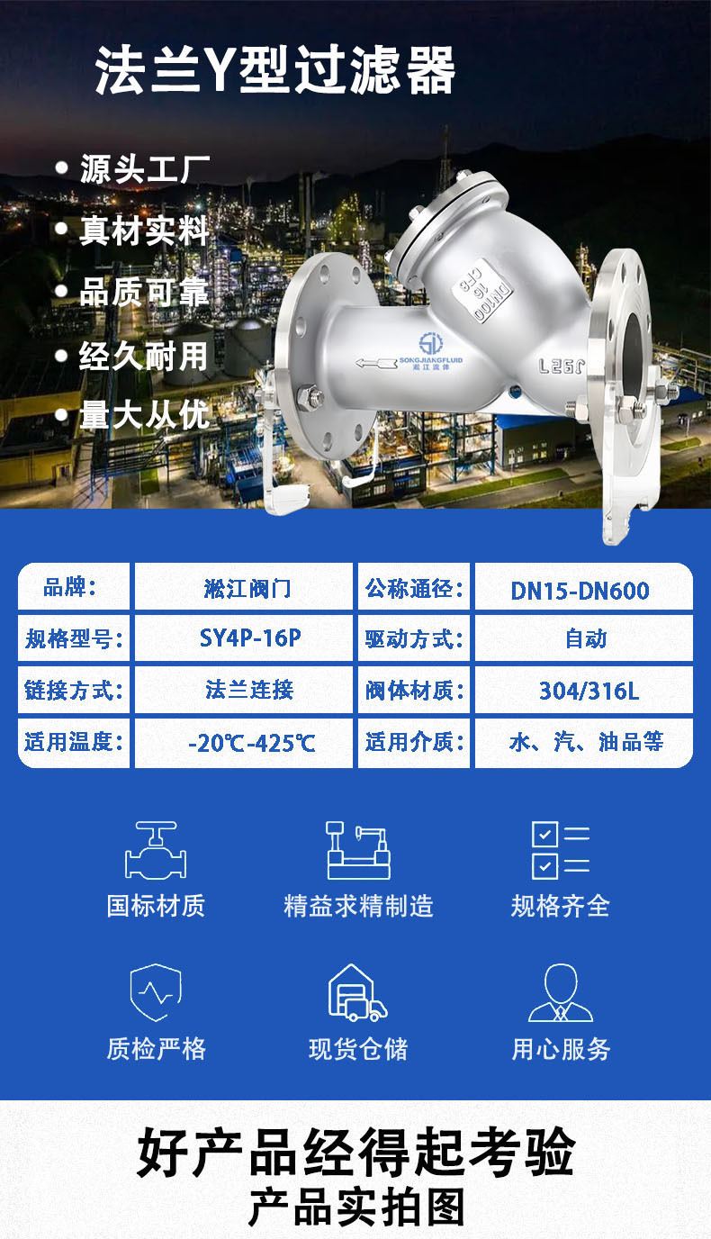 フランジy型フィルタSY4P-16Pステンレスパイプ排水弁化学耐食フランジフィルタ