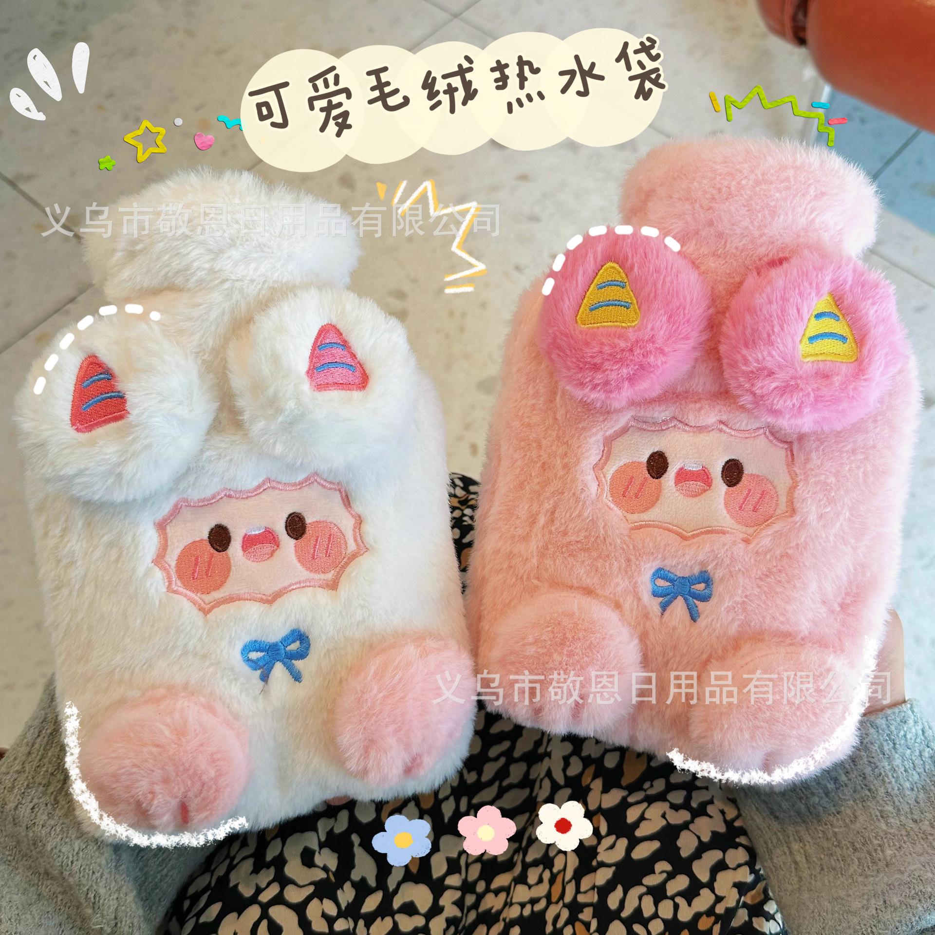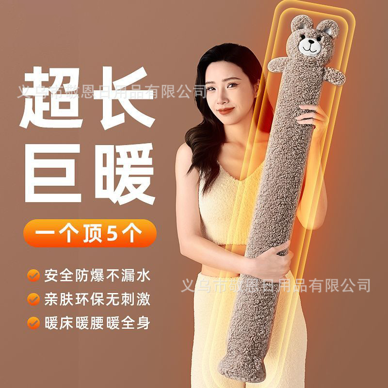 长条热水袋注水可爱加厚睡觉暖脚神器特大号加长被窝专用毛绒暖水