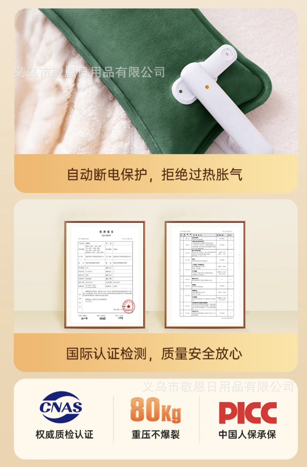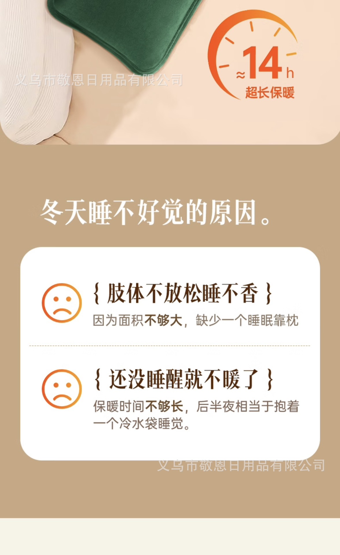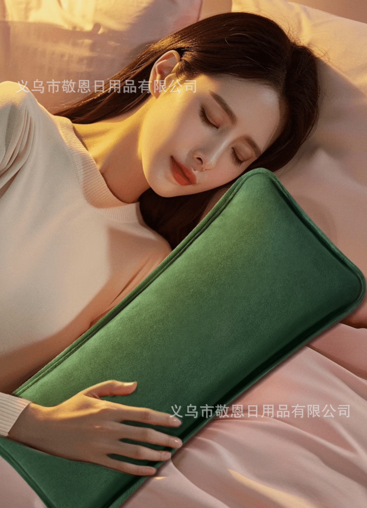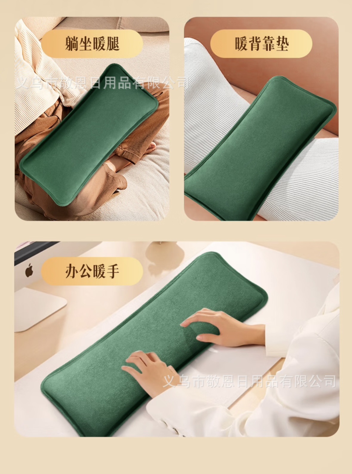 防干烧加大加长枕型充电热水袋暖腰暖床护颈丝光面电暖宝暖手宝