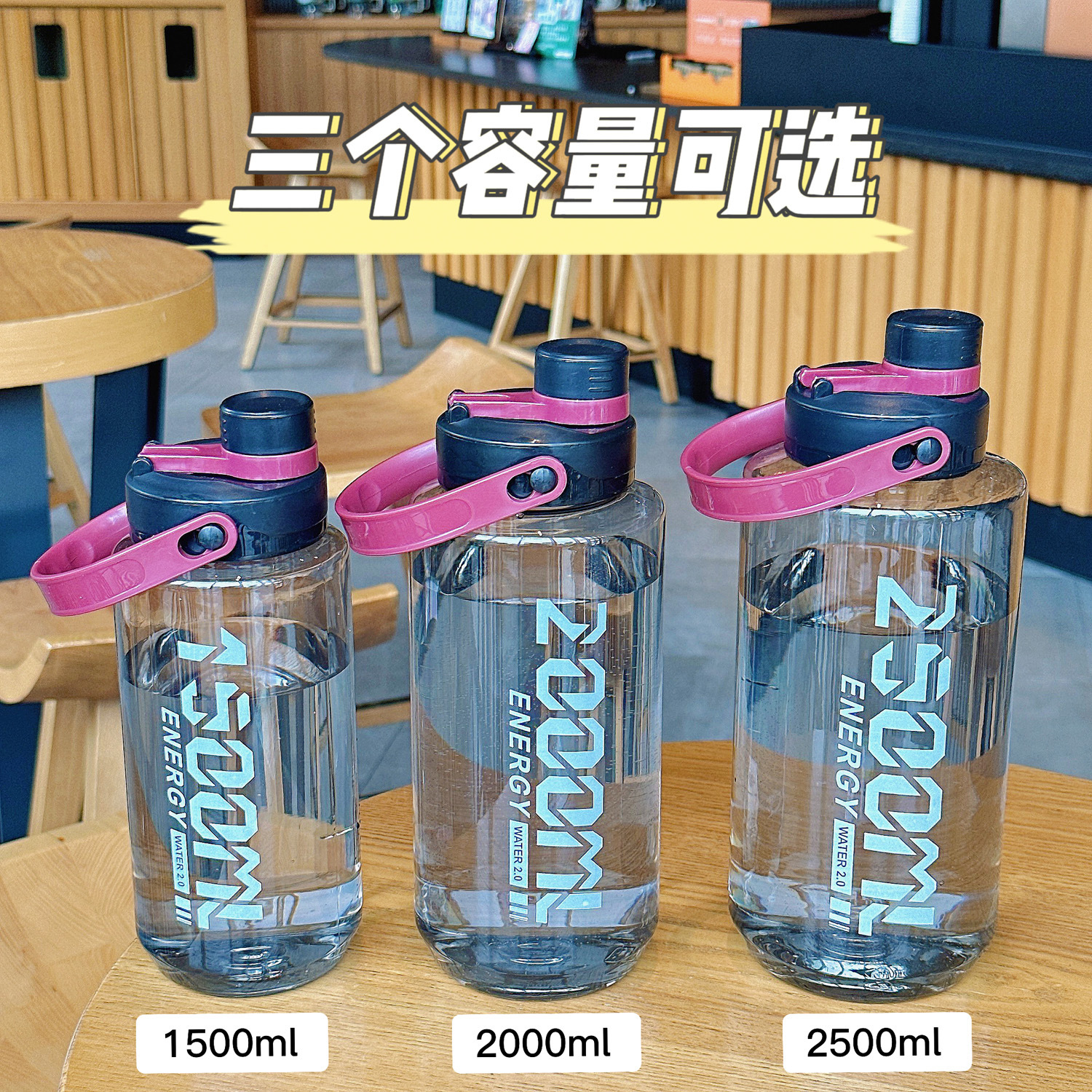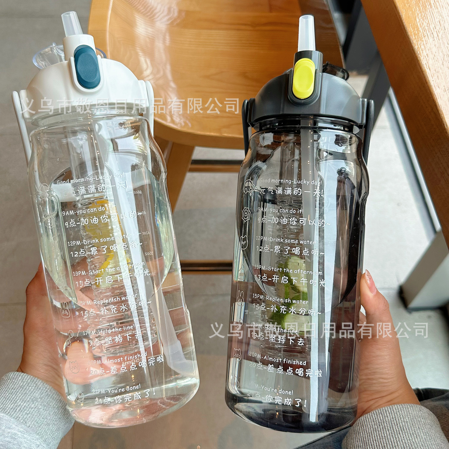 国境を越えた新しいプラスチックコップ2000ml大容量ストロー付き茶漏れ運動水筒携帯取っ手コップ