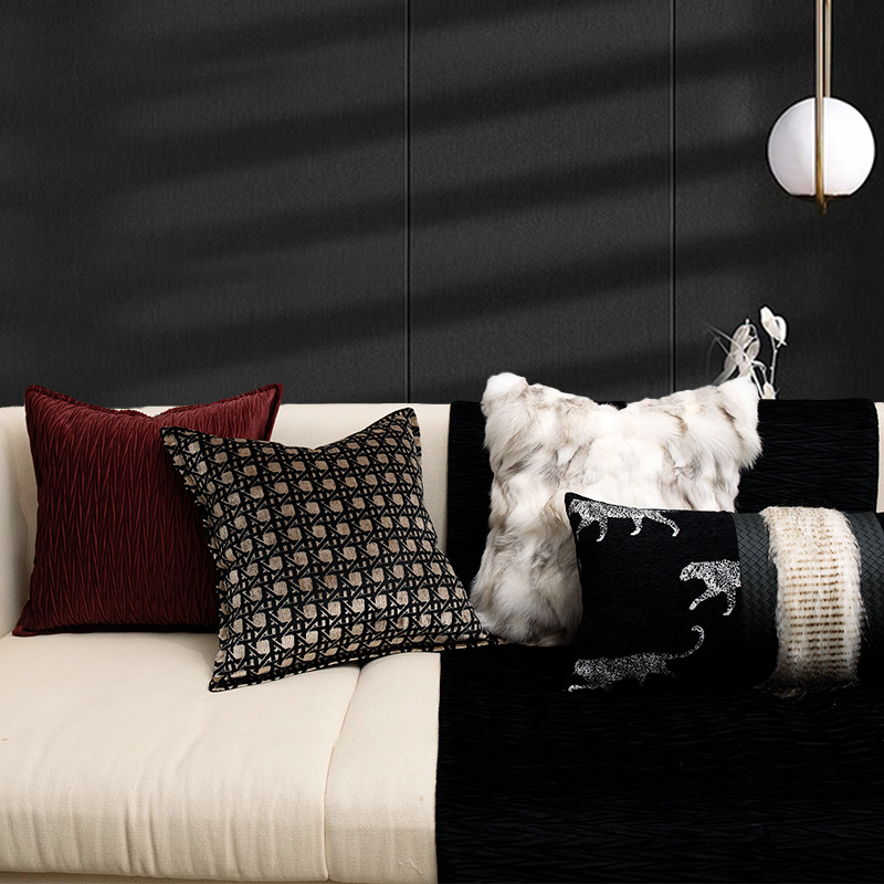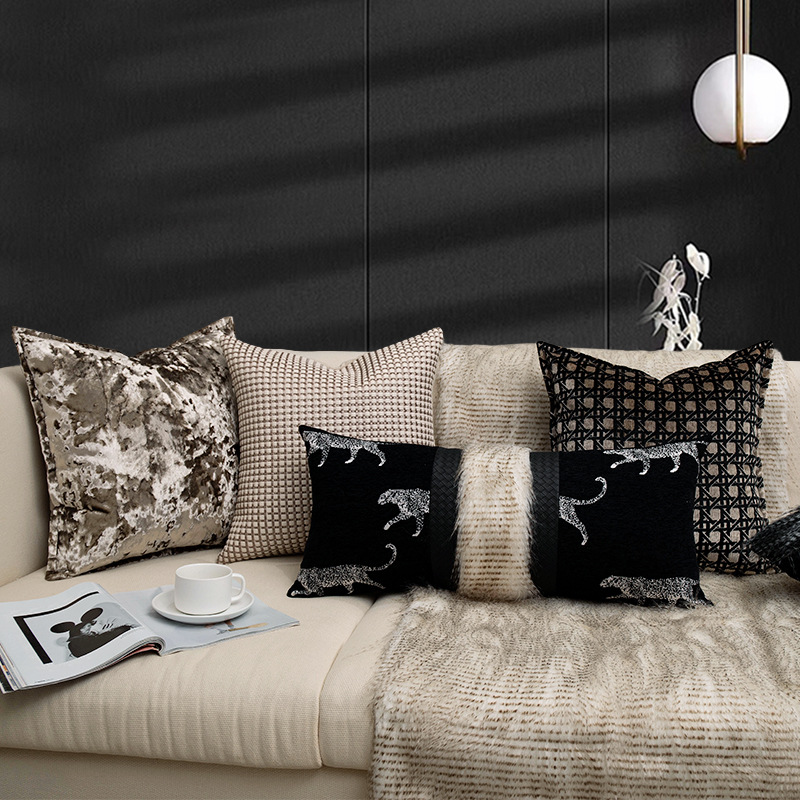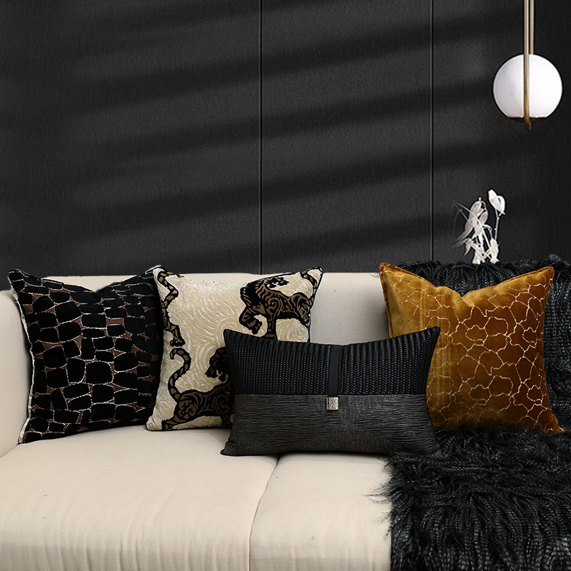 现代轻奢客厅沙发抱枕黑金高端割绒提花靠垫别墅样板房床头靠包腰