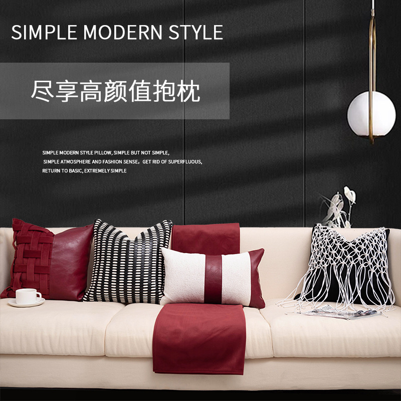 赤い高級感抱き枕現代軽豪華別荘客間ソファー枕見本室ソフト内装デザイナーアクセサリー