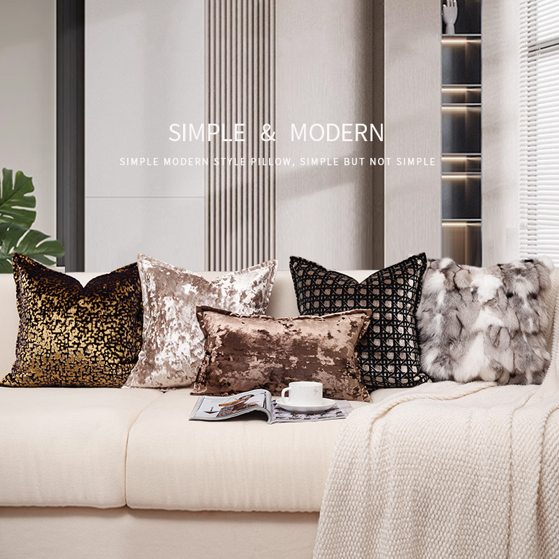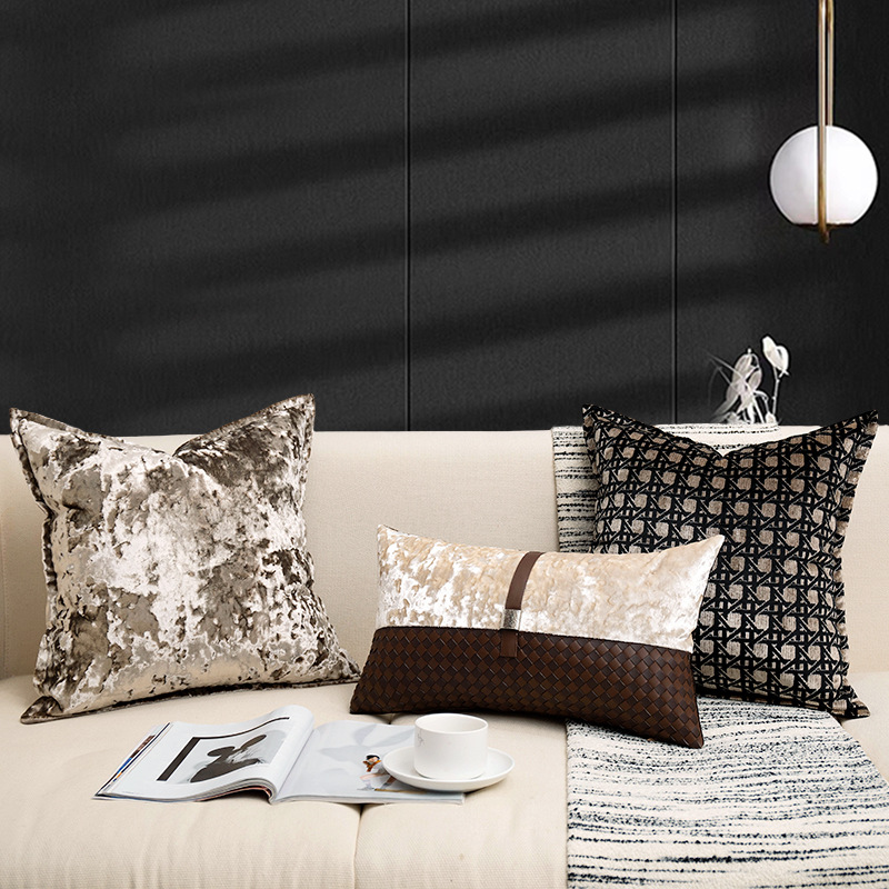 现代轻奢客厅沙发冰花绒抱枕样板房软装设计师款编织靠枕长枕批发