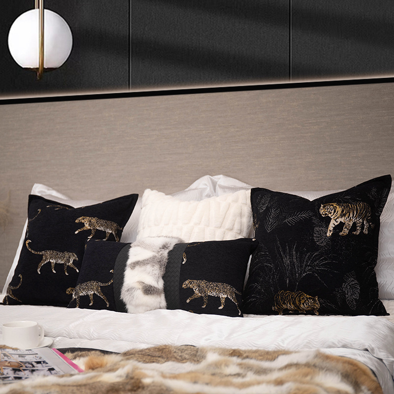 現代の軽贅沢ソフトサンプルの間に黒金の高級なつなぎ合わせは枕の別荘のホテルのソファーのクッションのベッドの頭の腰の枕カバーを抱きます。