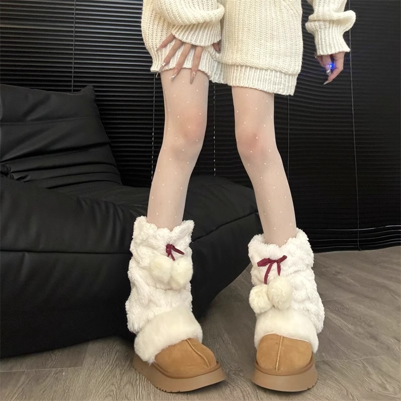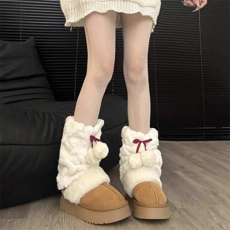 秋冬保温の靴下カバーの女性の毛の靴下カバーの厚い延長y 2k日本の毛玉のラッパのふくらはぎの靴下の足カバー