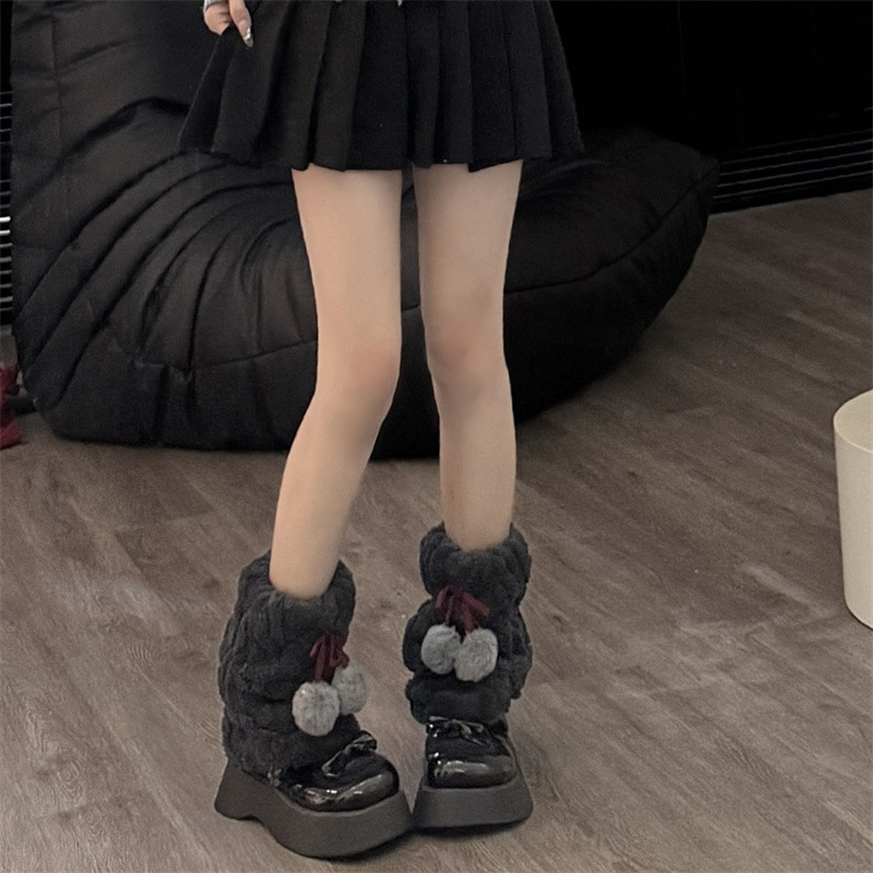 日本式かわいい毛玉靴下カバー秋冬y 2kパイル厚手脚カバーins保温痩せ中筒靴下