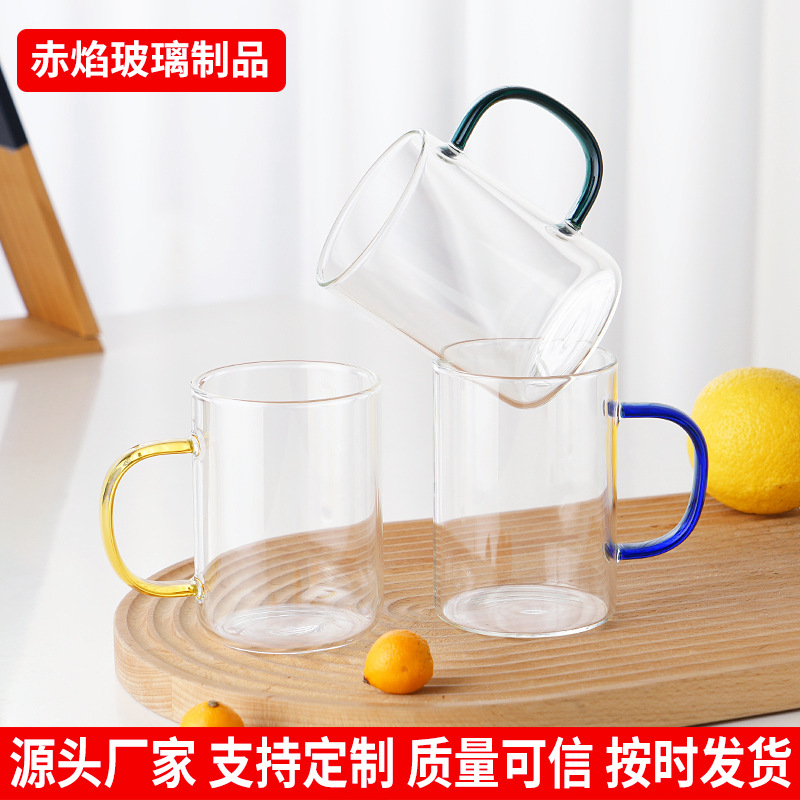 花彩底绿茶杯加厚高硼硅玻璃杯喝水杯带把手办公室泡茶杯绿茶杯子