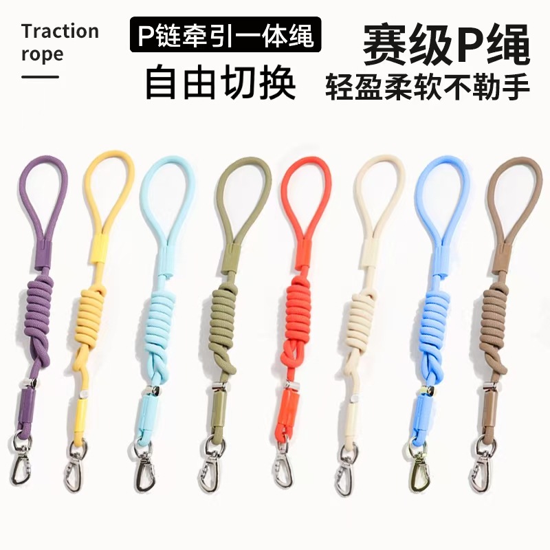 跨境多功能超轻遛狗P链牵引一体大中小型通用宠物牵引绳彩色狗绳