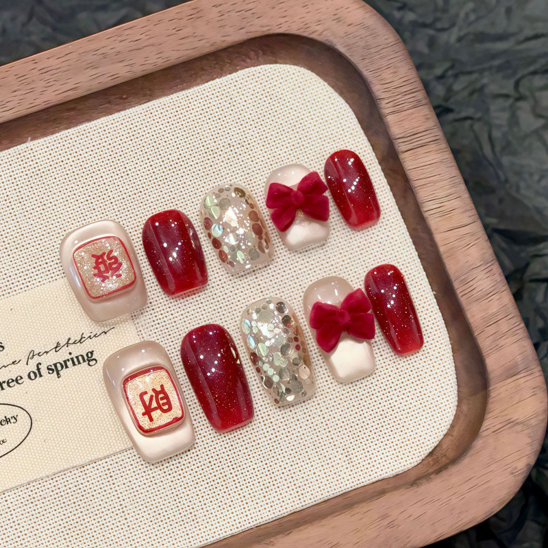 太武 新年開運ベルベット蝶ネイル 美白効果 新年限定 手作りつけ爪 高級感 ショートタイプ