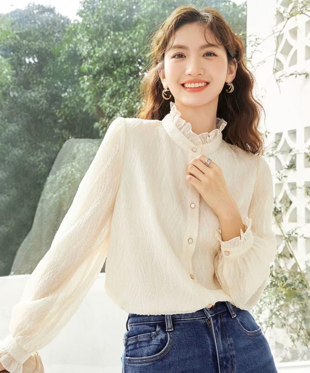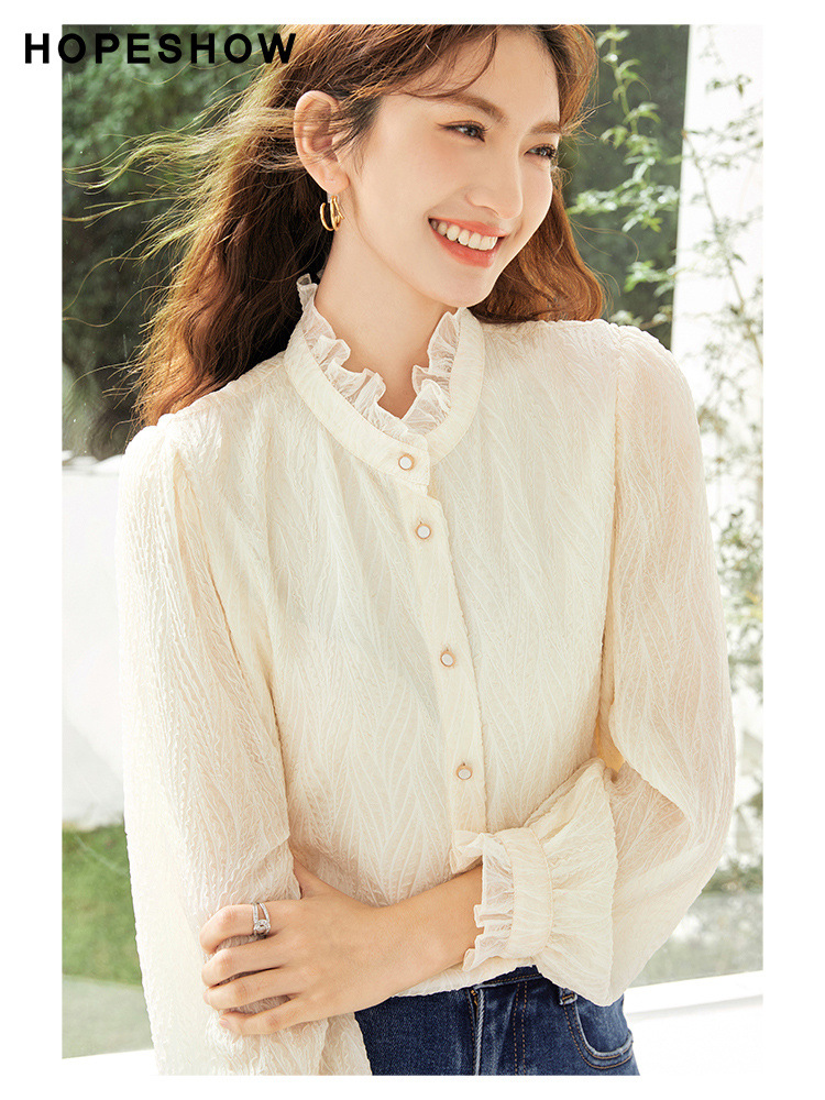 法式高级感木耳边长袖立领衬衫女2025早春季新款别致减龄气质上衣