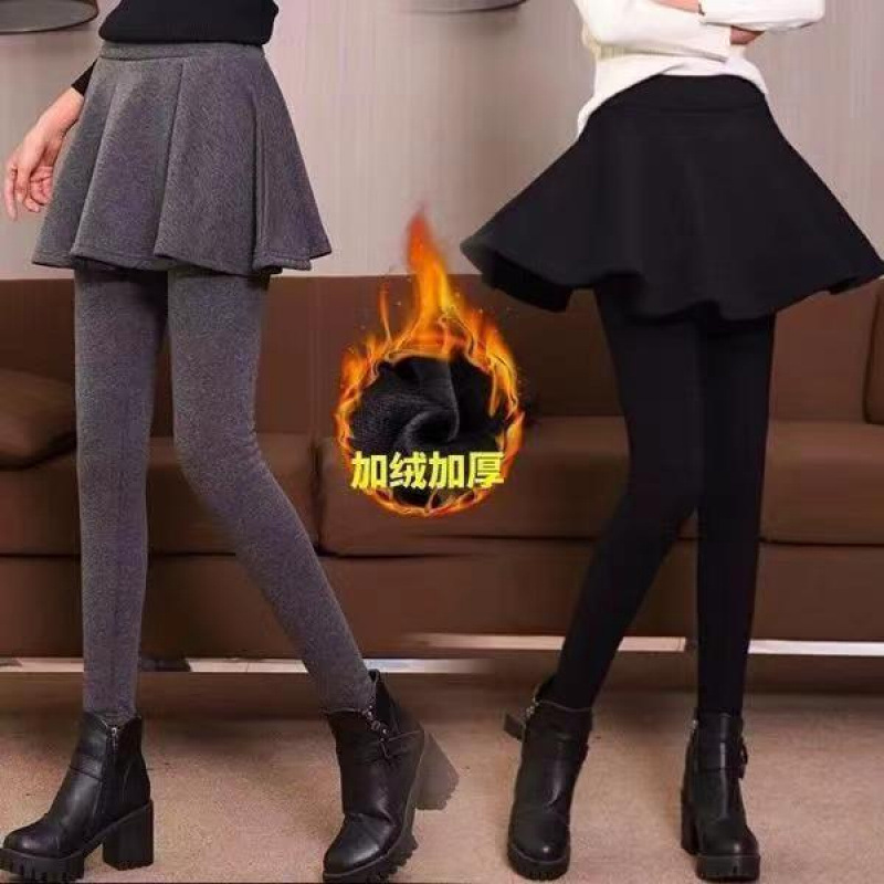 白【一送一を買う】ベルベットを厚くして、韓国版のフリルスカートの偽の2枚のレギンスを着て、保温して底を打つ