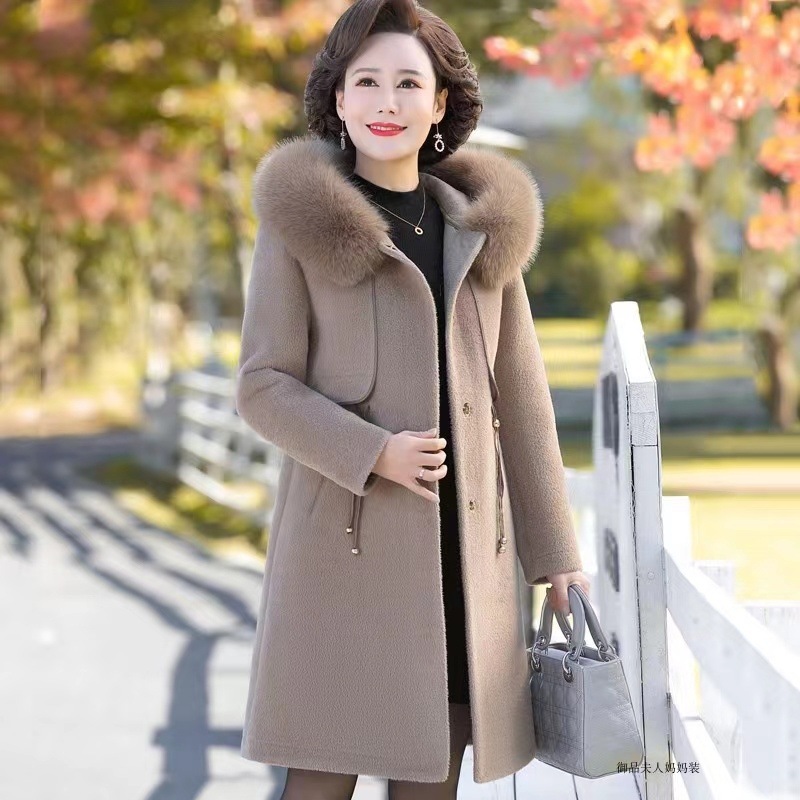 真っ白な中年のお母さんのコートの新型の中高年の女性の中で長いミンクの綿入れの服は厚くてゆったりしている冬の上着です。