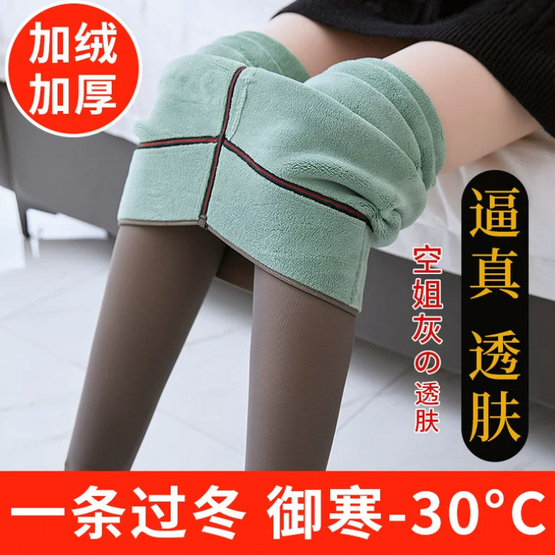 白空姐灰一体黒透肌ズボンの女性は秋冬にベルベットを着て、大きなサイズの偽透肉を厚くしてズボンを作る