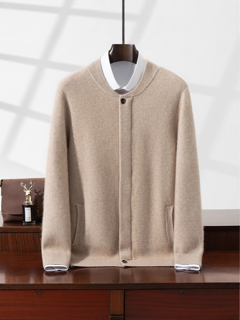 2025秋冬款山羊绒男士圆领拉链开衫系扣加厚毛衣外套羊毛衫
