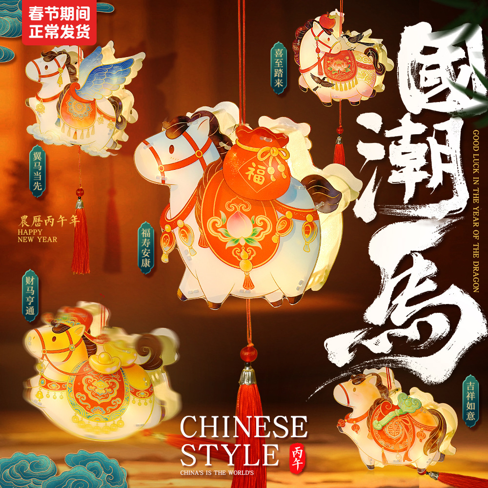 元宵節子供用携帯提灯2026年国潮馬年手作りDIY素材キット発光提灯春節イベント