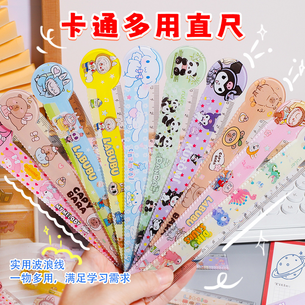 外贸可爱三丽鸥库洛米玉桂狗学生文具尺子卡通造型直尺波浪测量尺