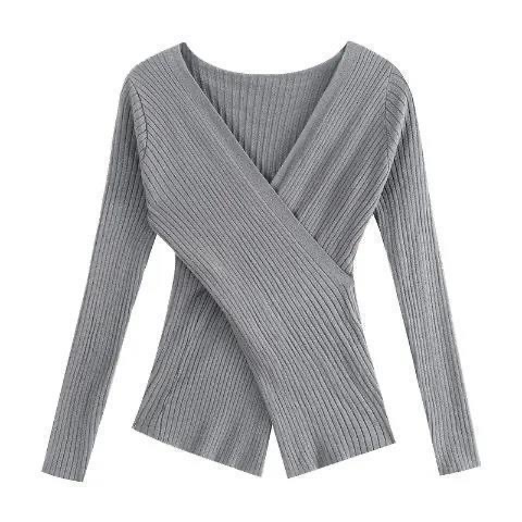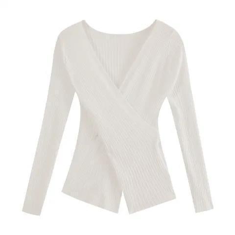 ニットの底のシャツの女性の早春の純欲の中でデザイン感の小さい大衆のvネックのセーターを掛けて身を修めて痩せています。