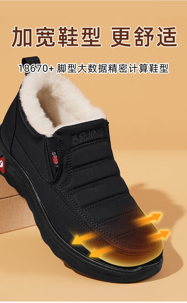 古い北京布靴男加毛中高年滑り止めソフト底綿靴冬労働保相巾軍単二綿靴卸売り