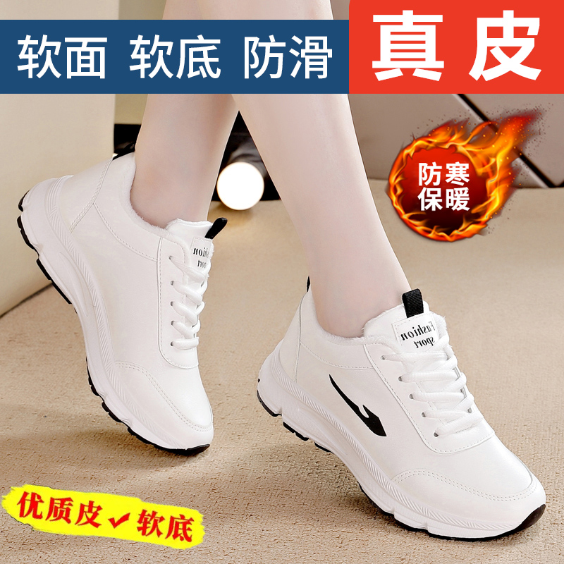 本革レジャー運動靴の女性2024冬の新型レジャーとベルベットの白い靴の軽い柔らかい底の旅行靴の女性