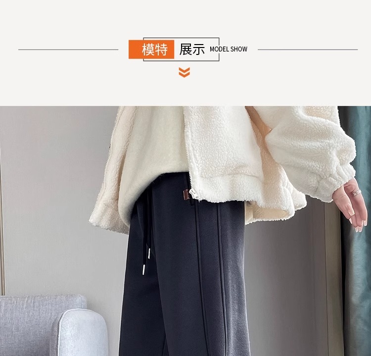 ワイドパンツの女性は冬にベルベットをつけてスポーツパンツの狭いバージョンのストレート感のあるズボンの子羊のベルベットの外に防風綿のズボンを着ています