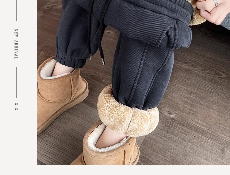 秋冬の女性用ラムウールスウェットパンツ、ベルベットスウェットパンツ、2025年新作パンツ、厚手の防風パンツ、冬用アウターウェア綿パンツ