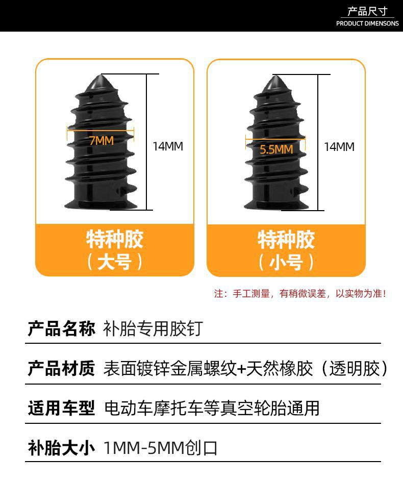 真空胎专用胶钉补胎神器汽车轮胎电动车摩托车快速补胎钉修补工具