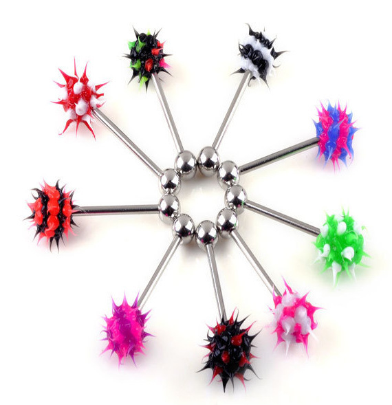 2016欧米亜力克毛玉ステンレスバーベルチタン鋼アレルギー防止感染舌釘穿刺アクセサリー