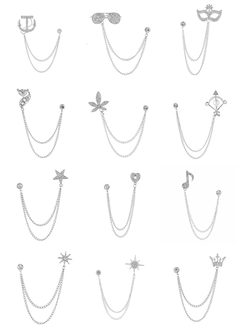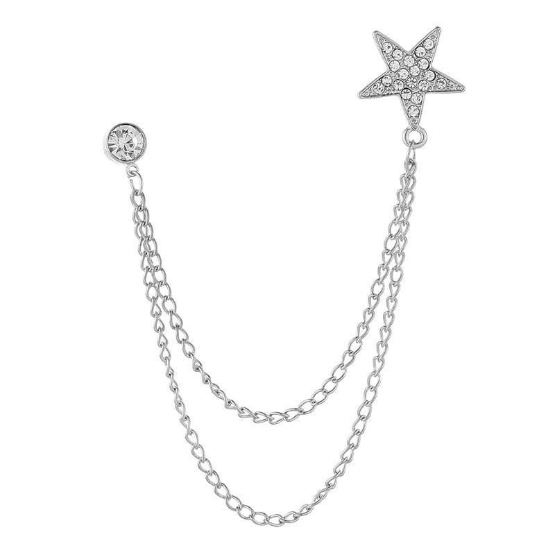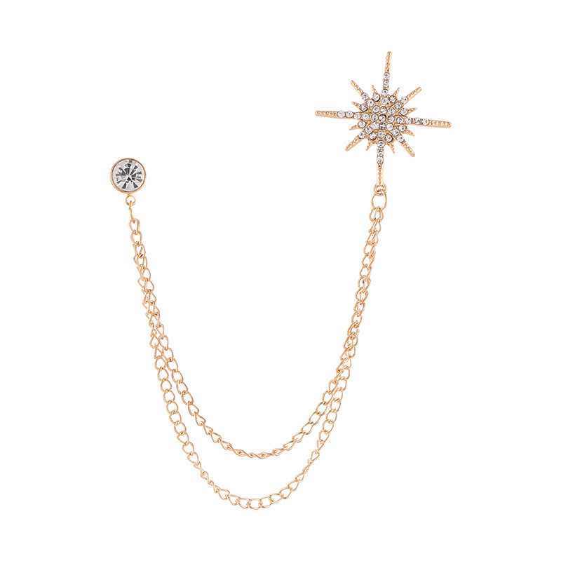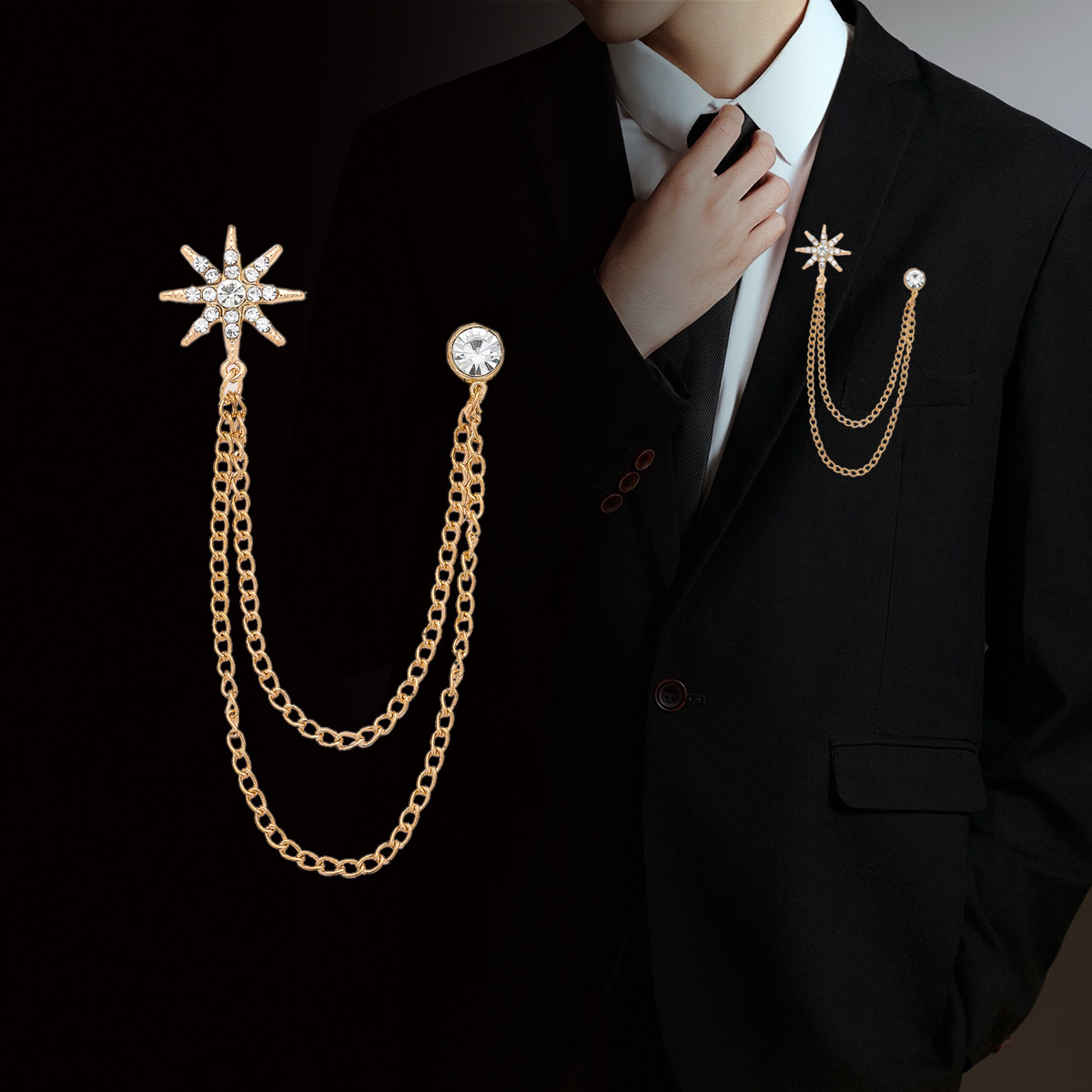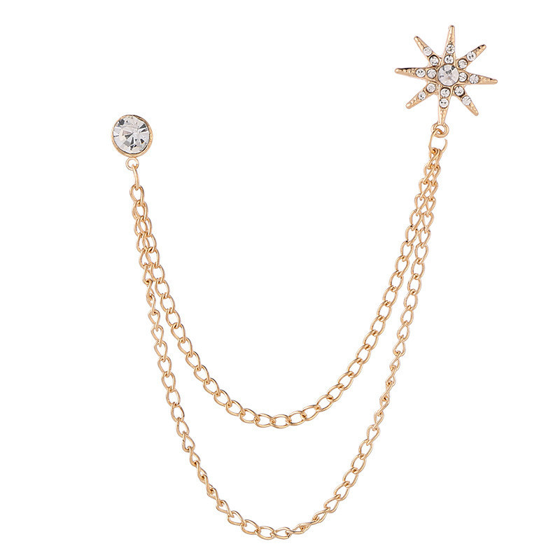 男性のスーツの韓国版の8芒星のブローチのチェーンのピンのスーツのコートのピンの胸の花のシンプルな装飾