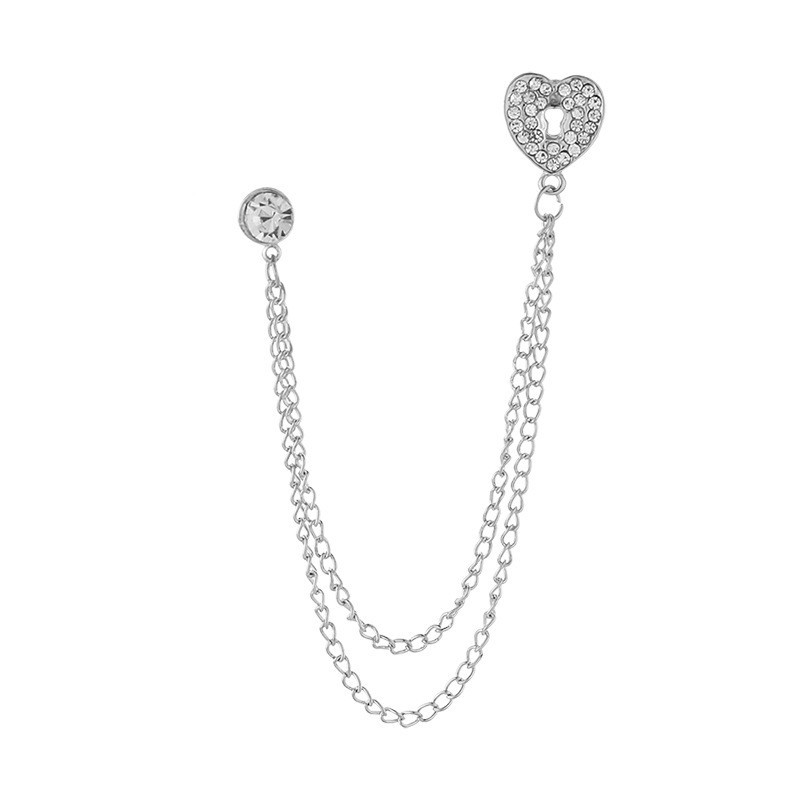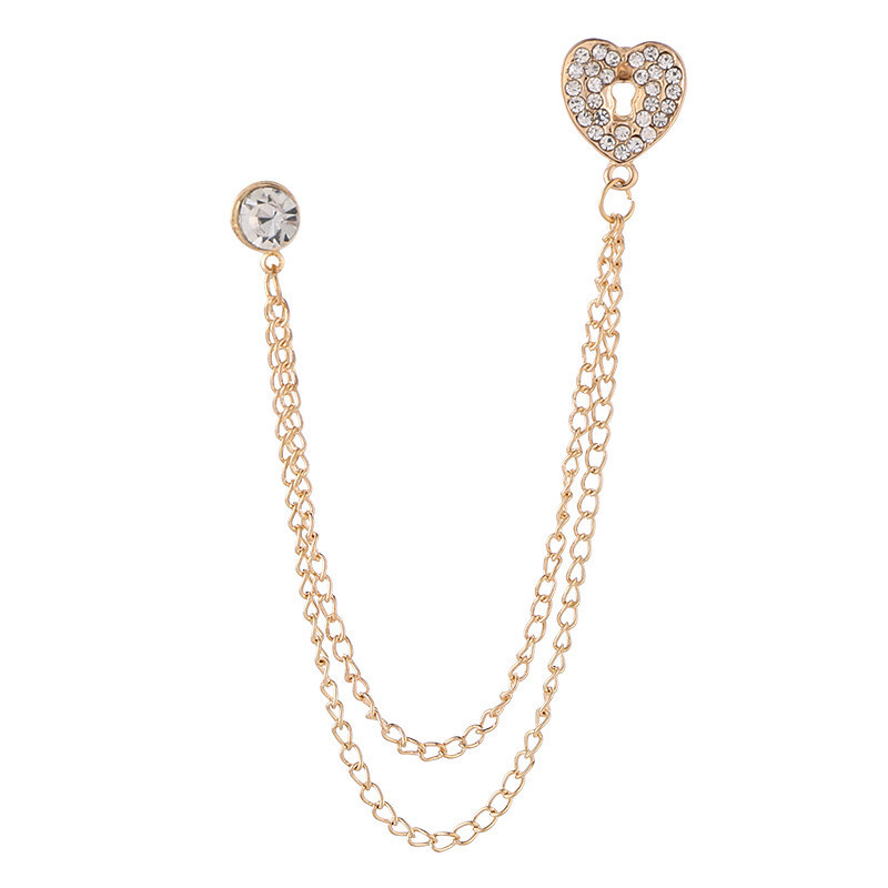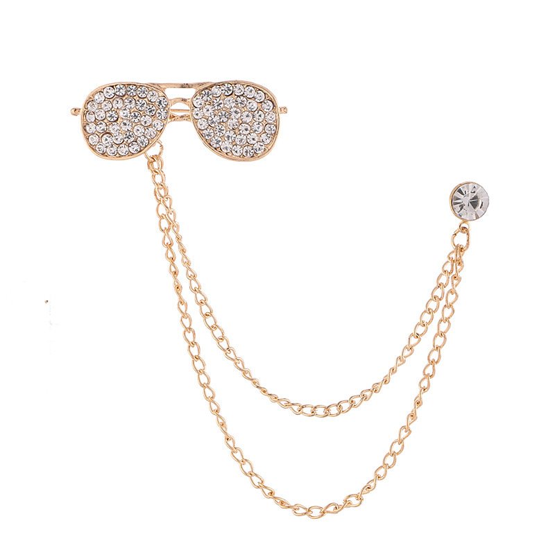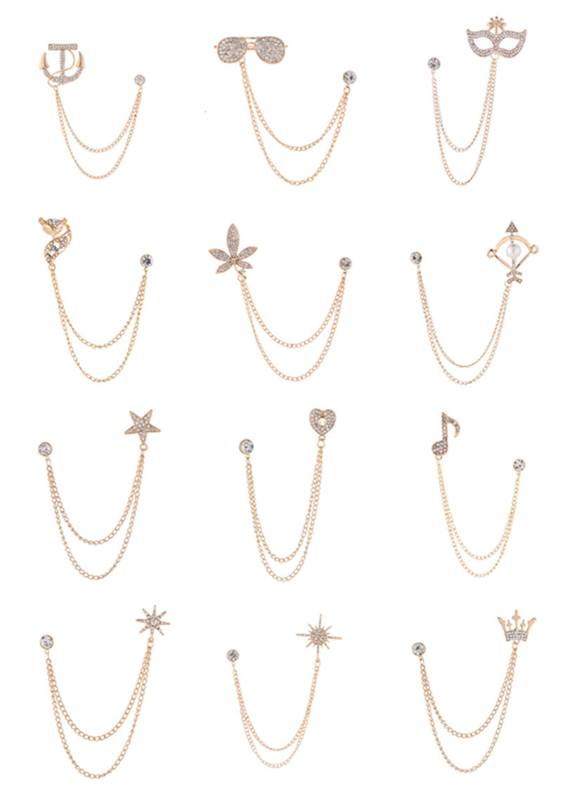 ファッショントレンド男性チェーン五角星ブローチ満ドリルクラウン音符チェーン付き個性スーツアクセサリーピン