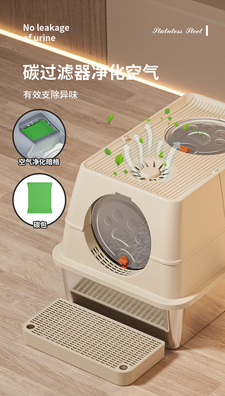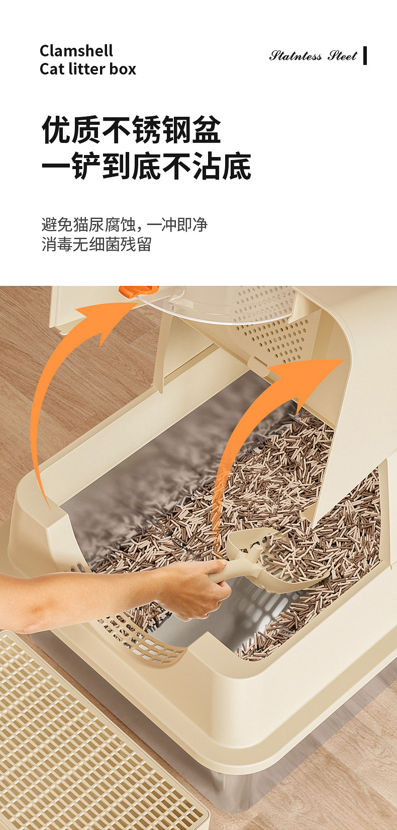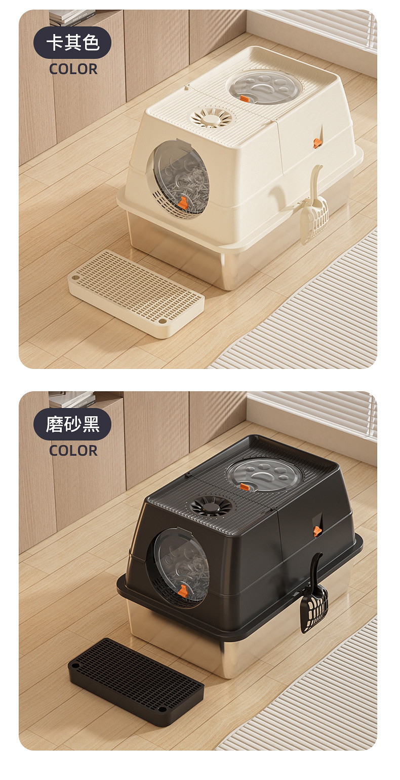 -产品名称 : 不锈钢全封闭翻盖猫砂盆