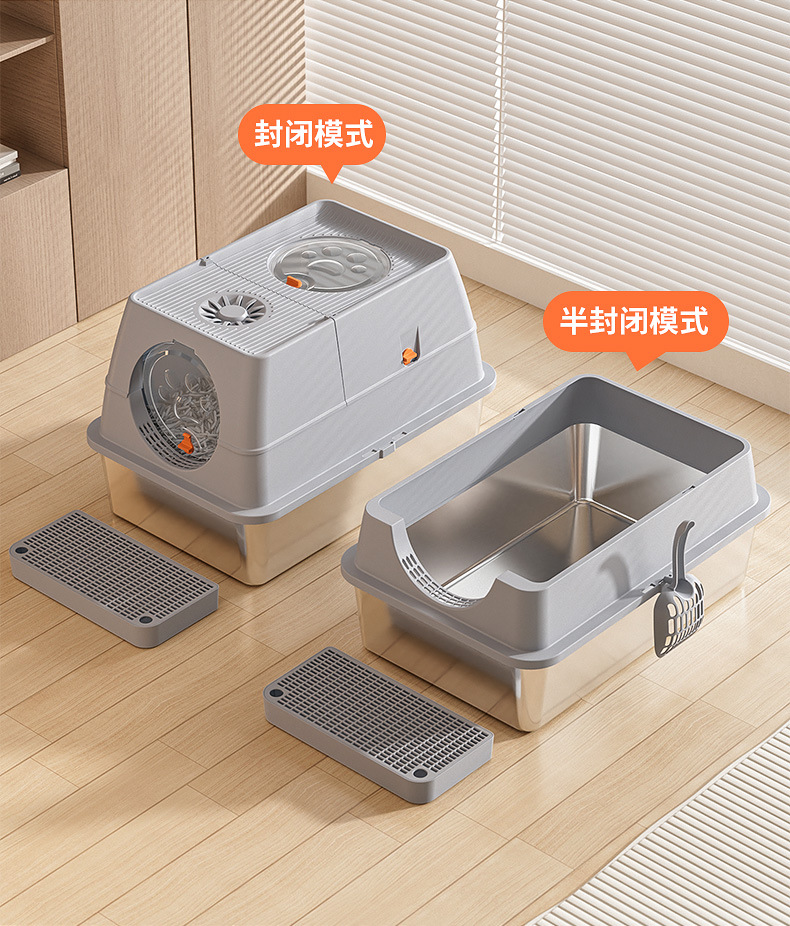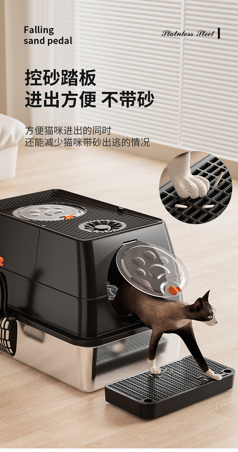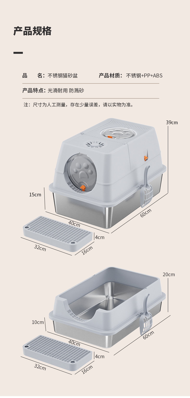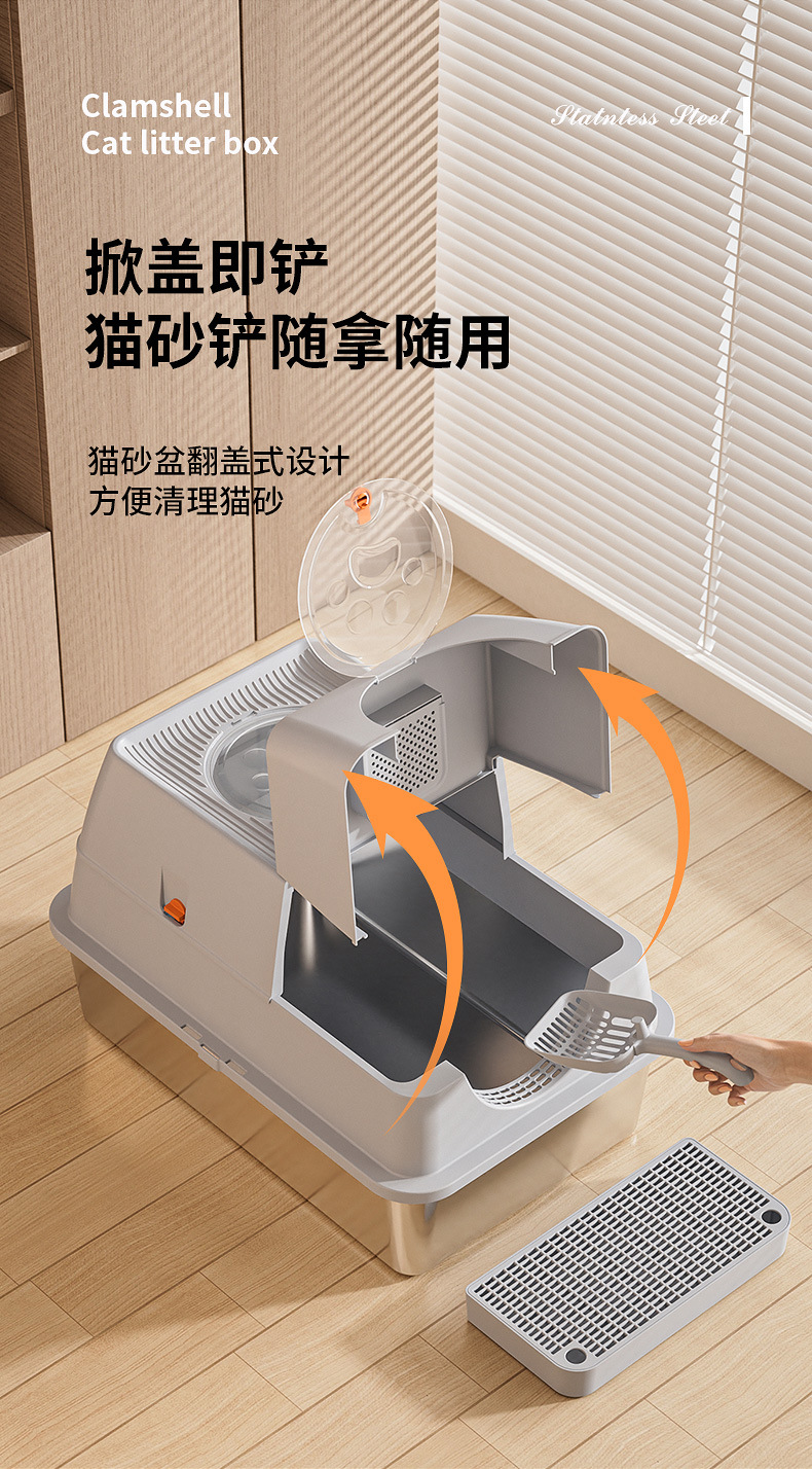 -产品名称 : 不锈钢全封闭翻盖猫砂盆