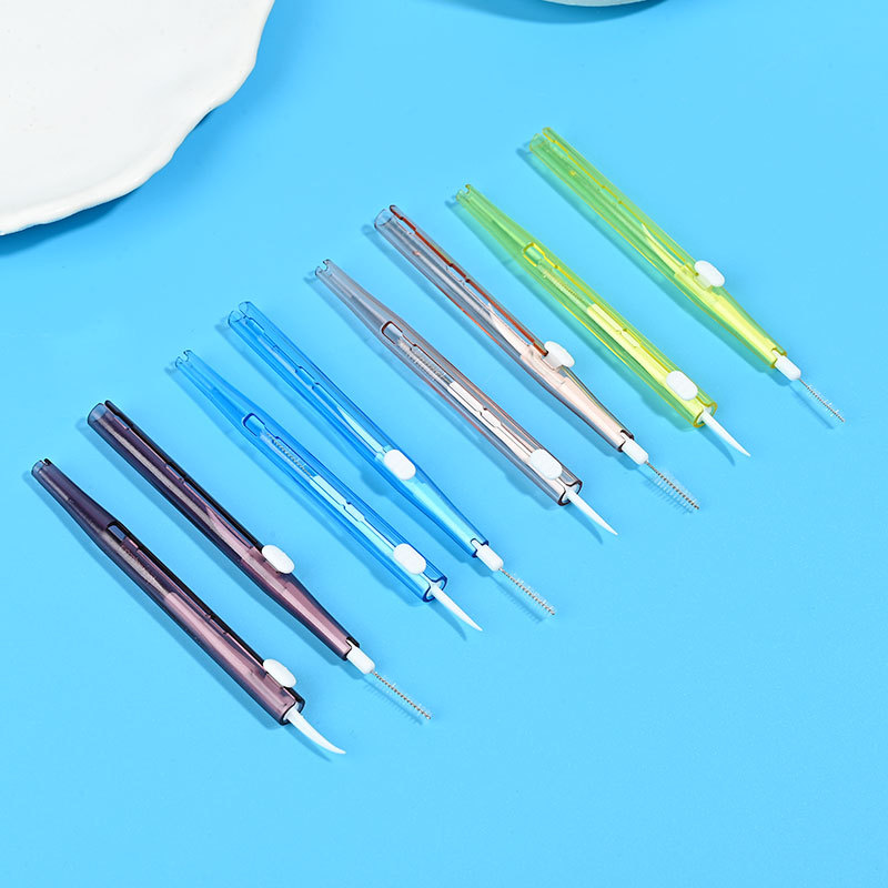 プッシュプル式歯間ブラシ、格納式歯間ブラシ、矯正歯間ブラシ、テール部分にフック付き、工場直販