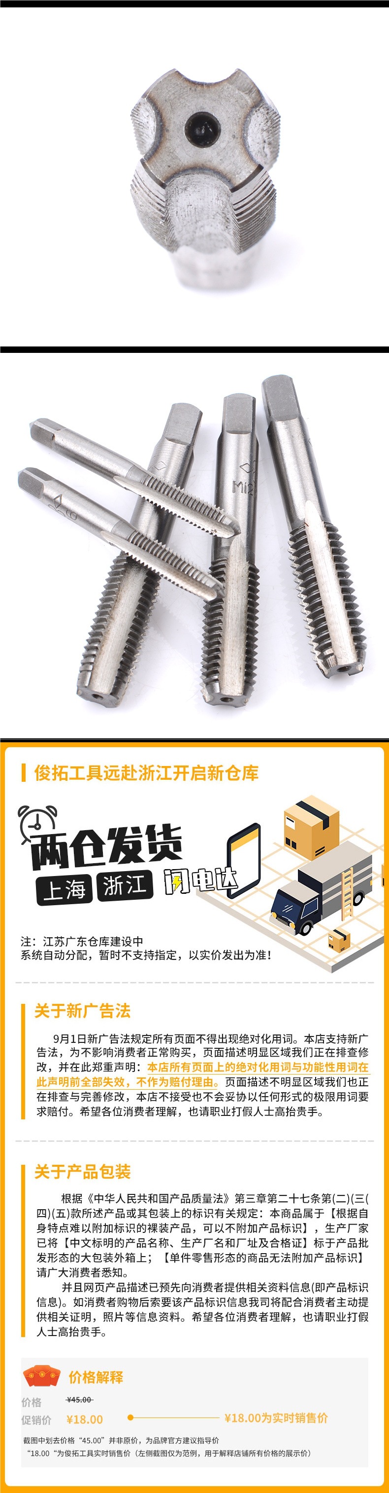 多機能複合タップ電動ドリル穴あけねじ切り工具六角軸ドリルビットセット機械用スパイラルタップ