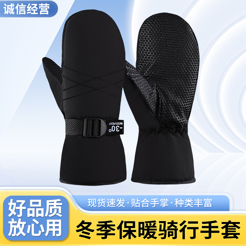 跨境外贸户外骑行电动车自行车保暖手套加厚闷子包指连指手套