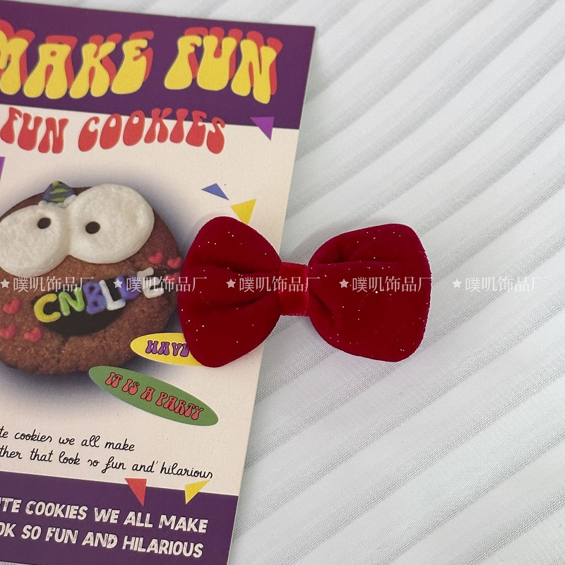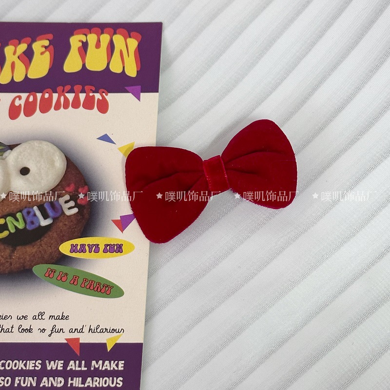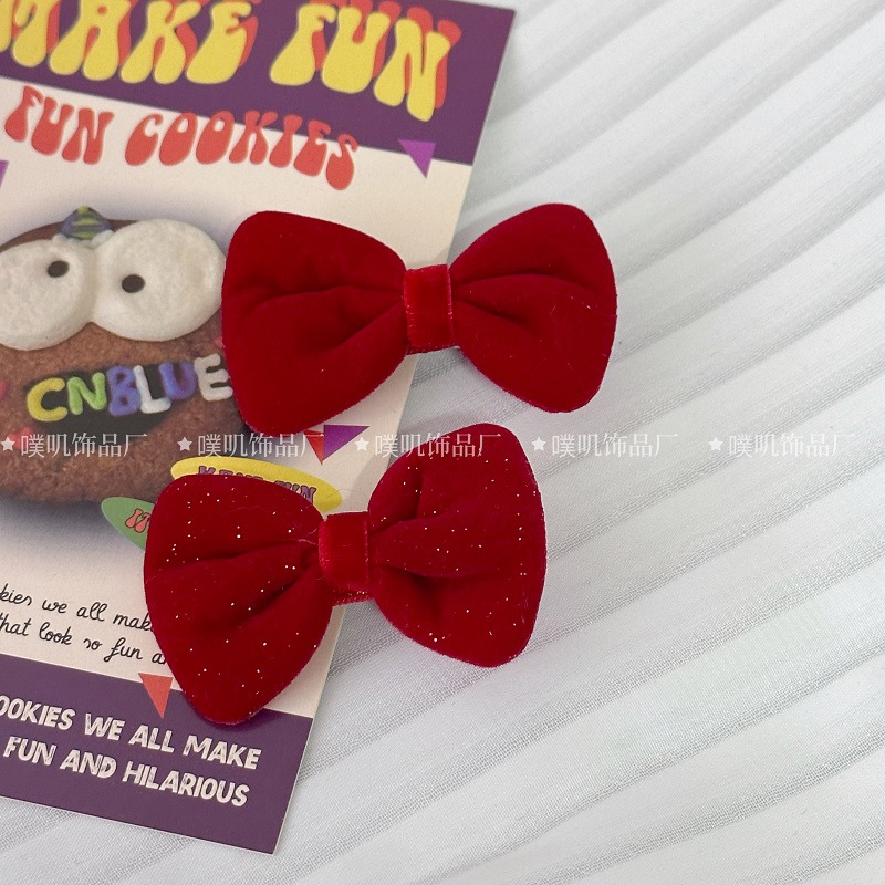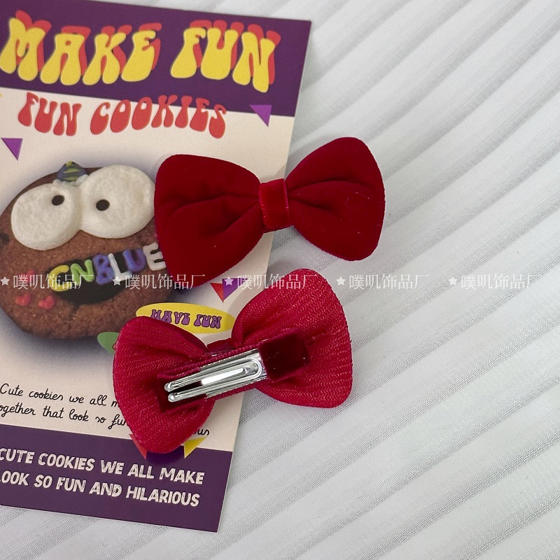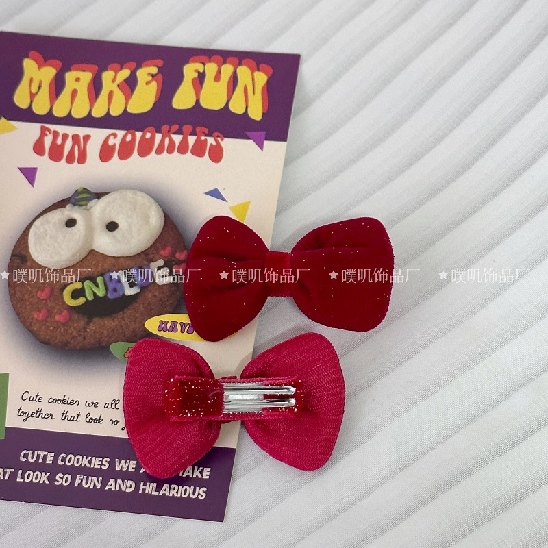 子供のベルベットの蝶結びの髪飾り女の子の新年クリップ赤ちゃんの王女の赤い布芸の髪飾り