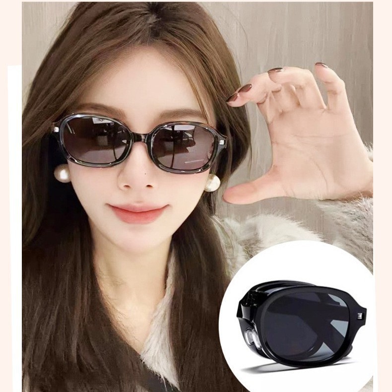 跨境新款椭圆框韩系墨镜防紫外线太阳眼镜女复古高级感防晒眼镜女