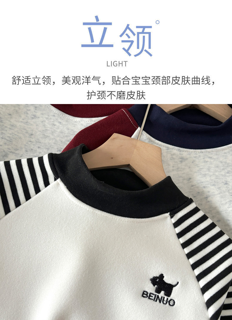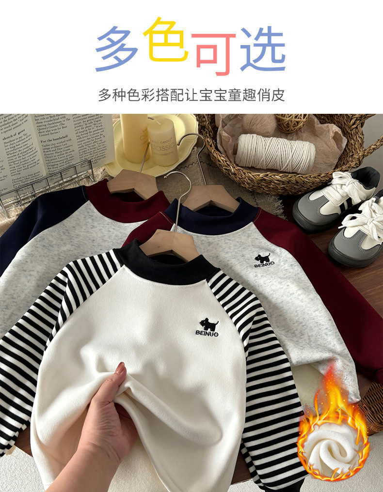 儿童打底衣580克高克重2025秋冬季新款加绒刺绣半高领打底衫长袖