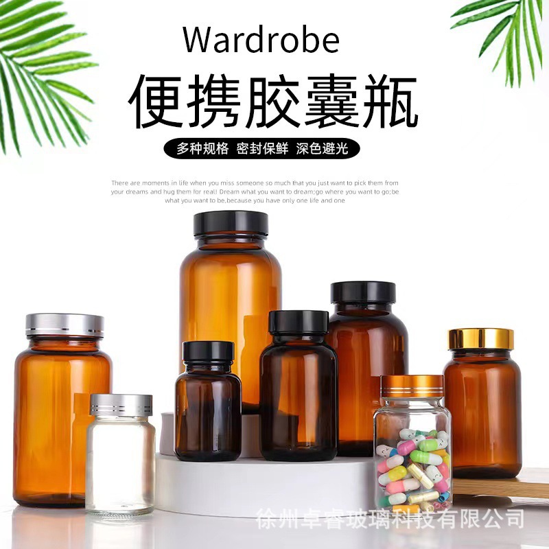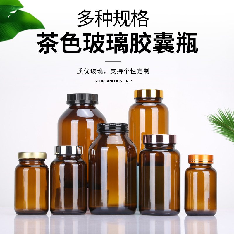 メーカー卸売り茶色カプセル瓶避光薬瓶保健品瓶蓋付き密封薬用ガラス瓶