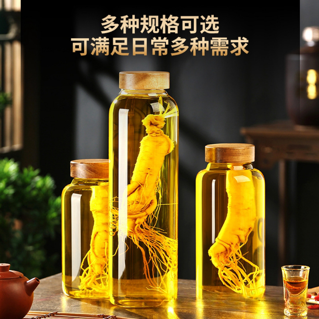 泡酒ガラス缶高ホウ素シリコン材質アカシア木蓋密封人参薬酒青梅酒専用