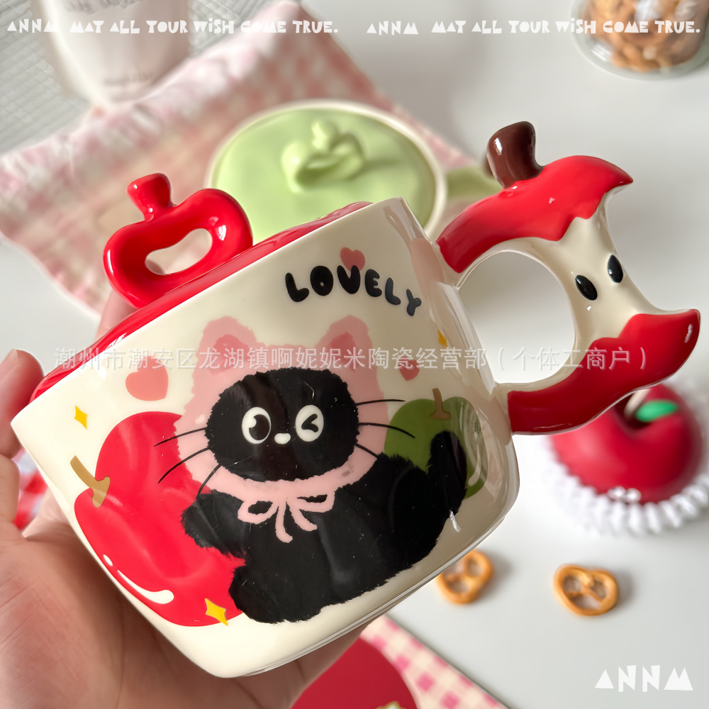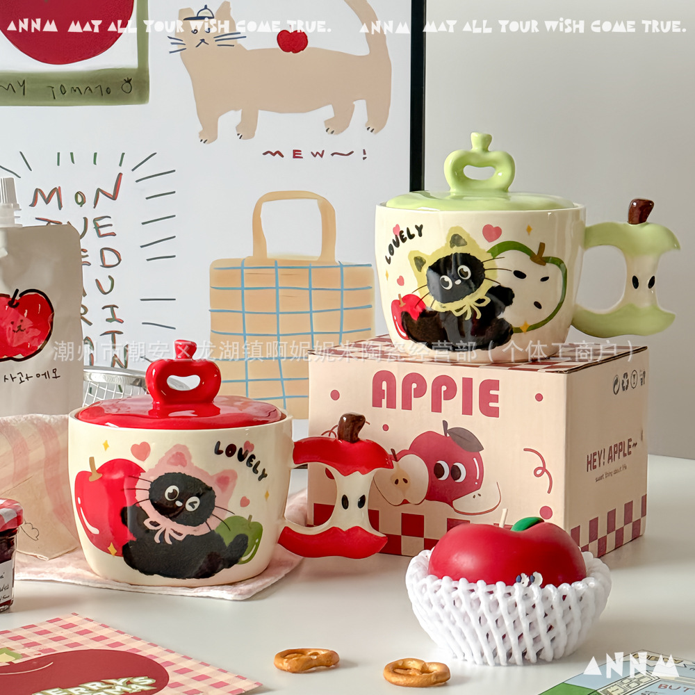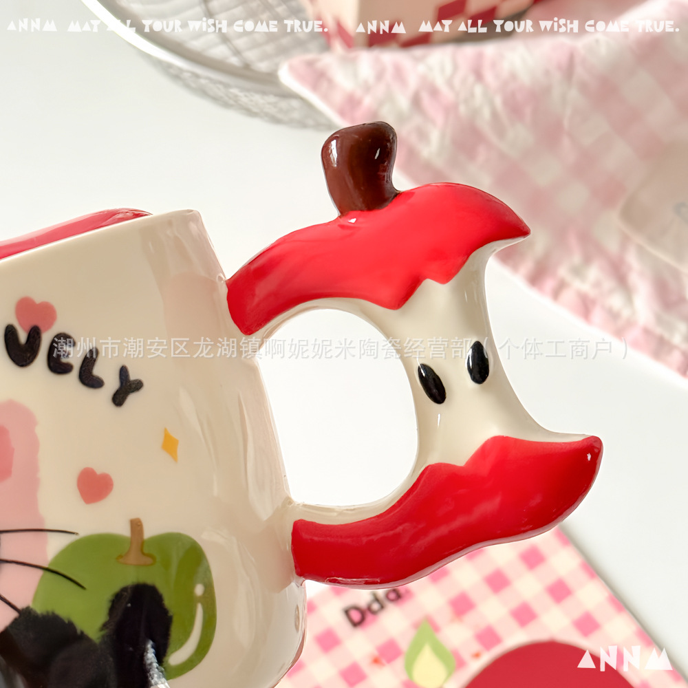 アップル猫マグカップ女子高颜値かわいい高温学生寮オフィス携帯陶磁器コップ