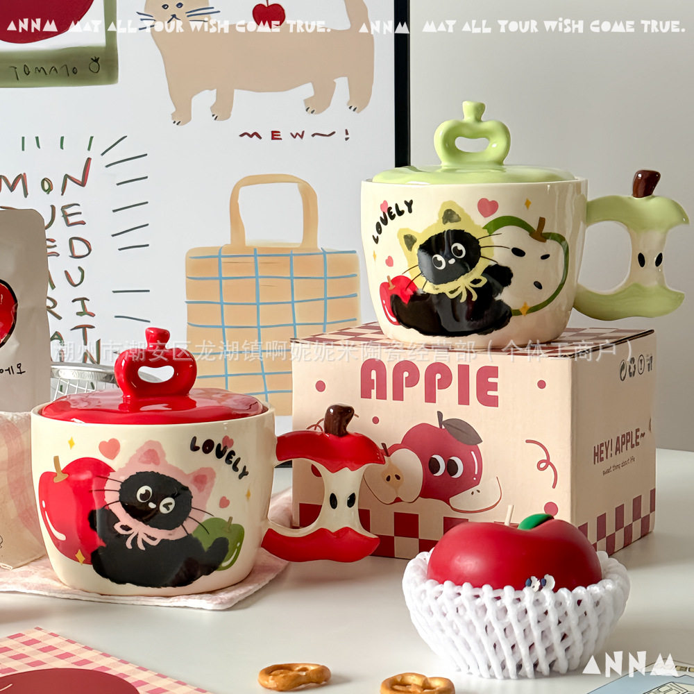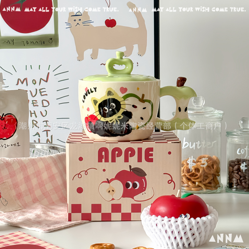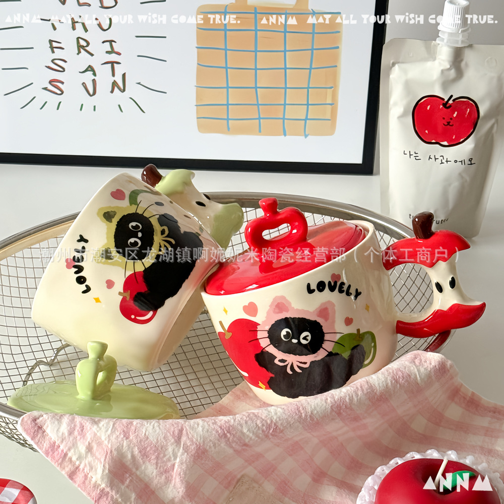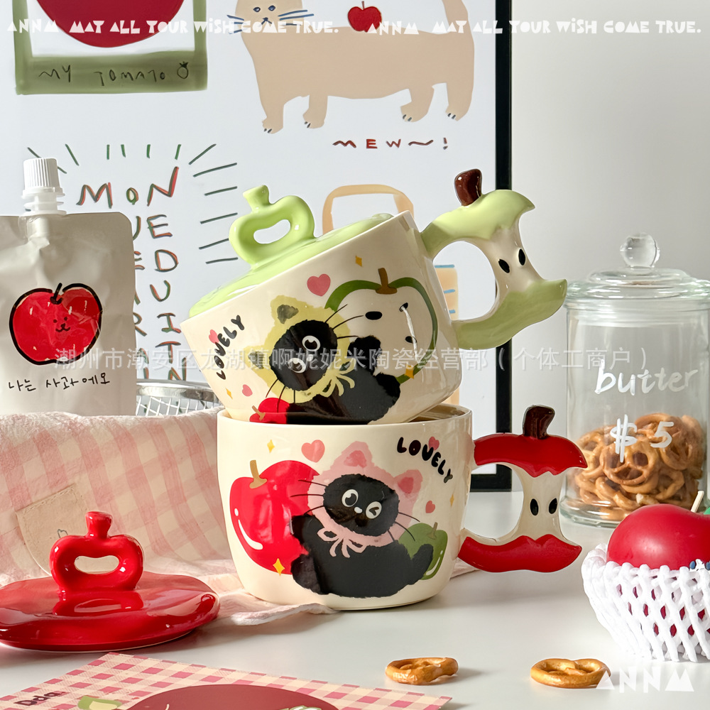 アップル猫マグカップ女子高颜値かわいい高温学生寮オフィス携帯陶磁器コップ