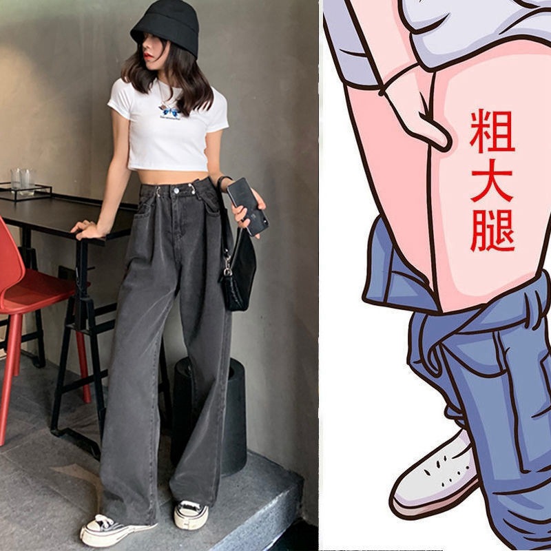 韓国版はらはらとした広い足でズボンを引きずって腰を上げてジーンズを調節することができます。