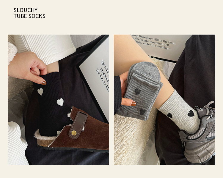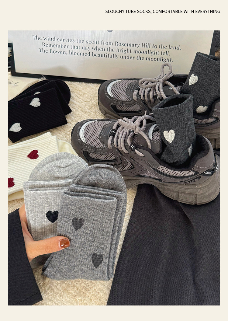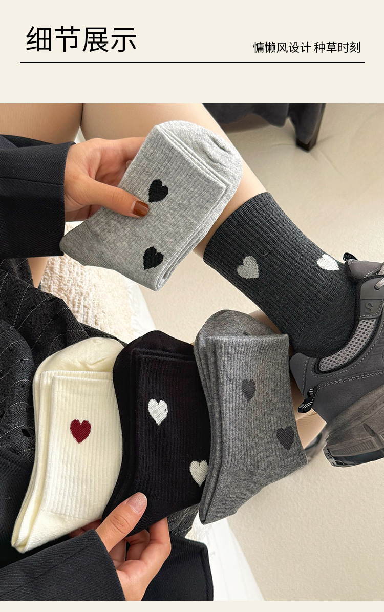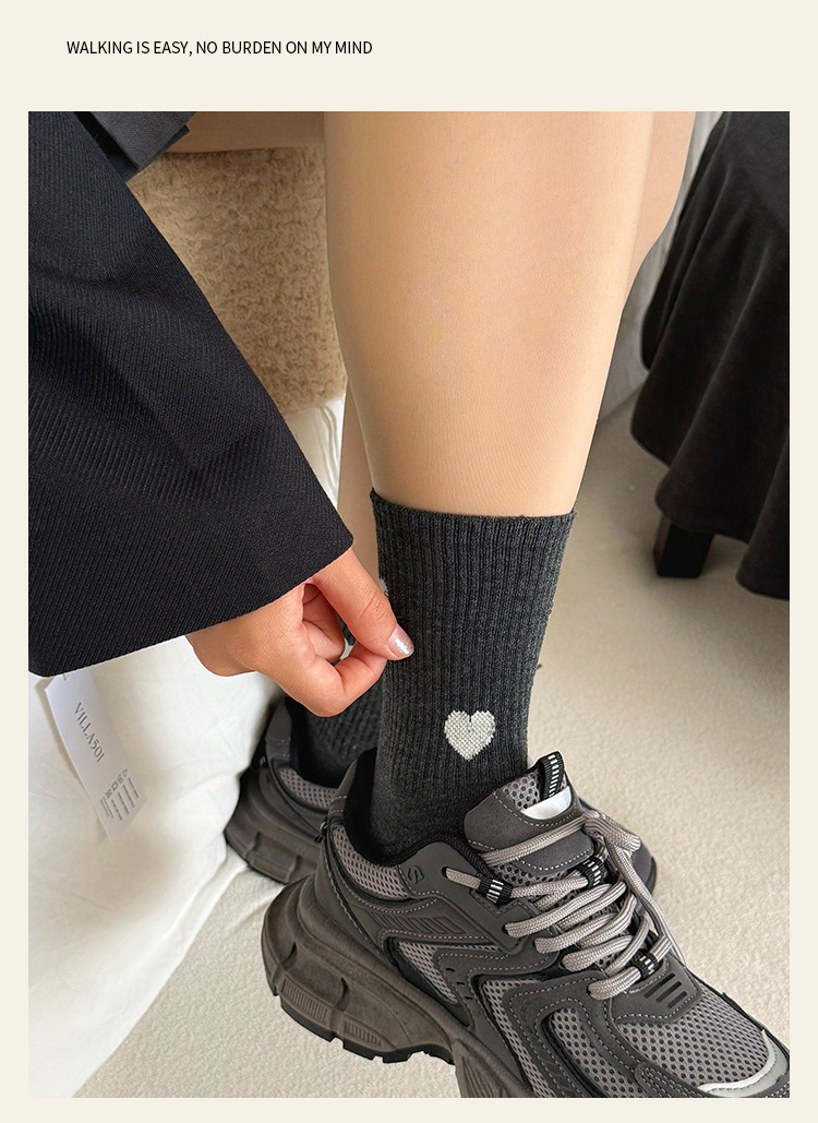 愛心の靴下の子供の中の筒の靴下の秋冬のストッキングの白黒の灰色の学生の靴下の韓国版の日本の東大門のファッションの靴下