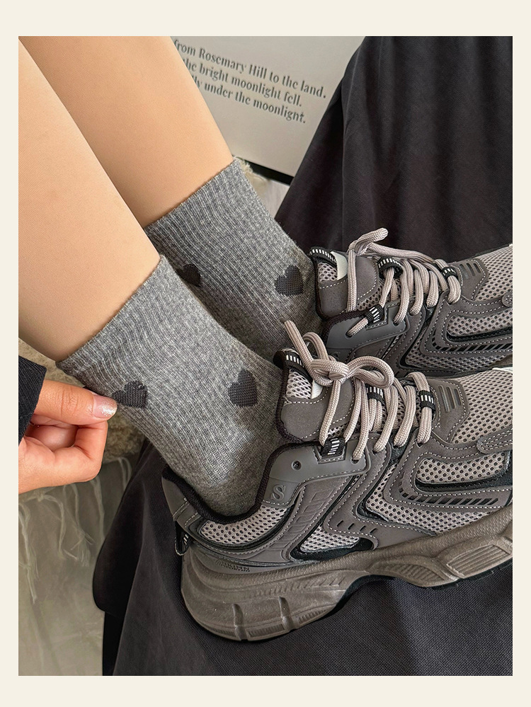 女性用の高見えするラブソックス、春夏スタイル、トレンディで多用途なグレーの女性用ミッドカーフソックス