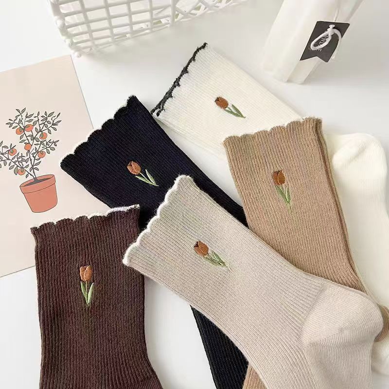 靴下の女性の螺旋の口のレースのチューリップの山の靴下の潮流の百合の学院の風の中で筒の靴下
