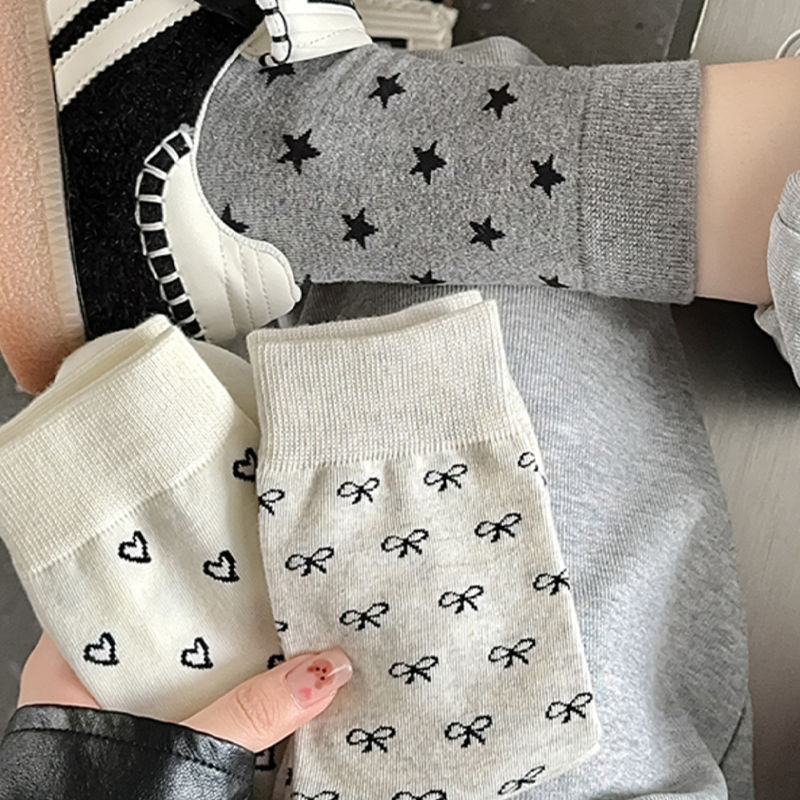 新しい靴下女性のミッドカーフソックスイントレンディなインターネット有名人同じスタイル韓国語バージョン日本多用途弓パイルソックスストッキング
