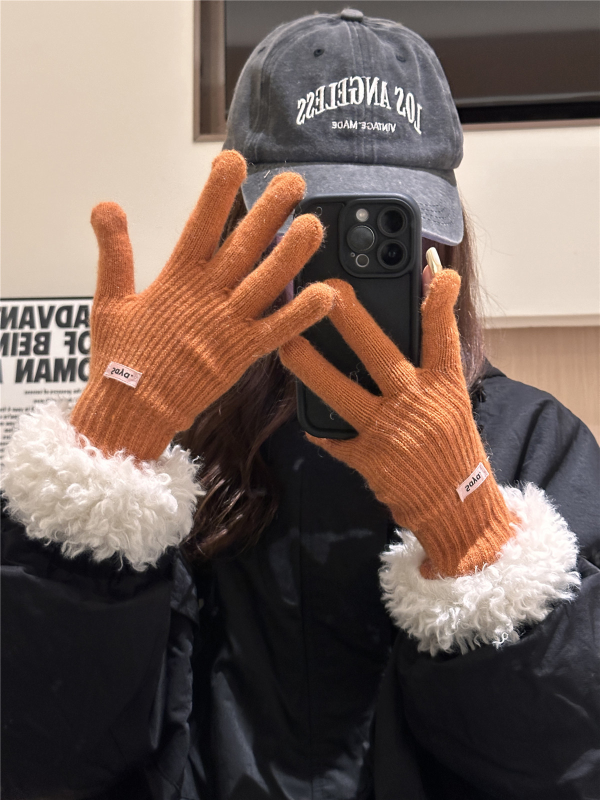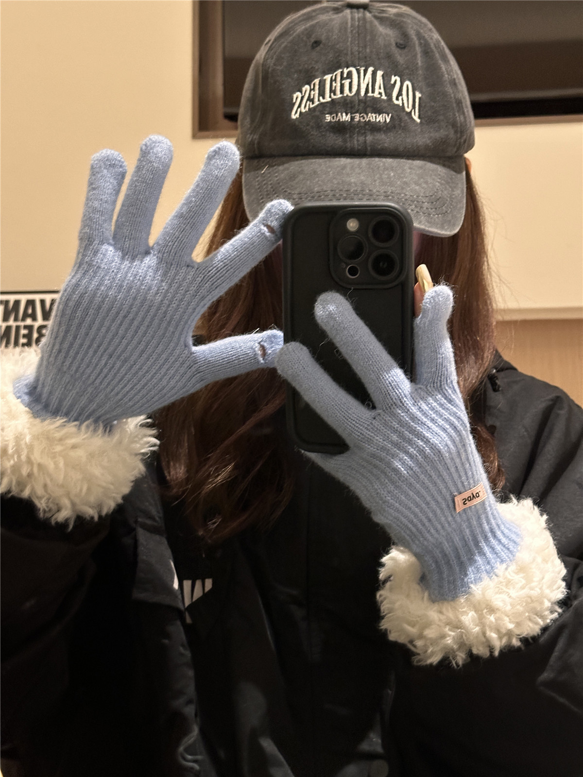 仿兔毛手套女生秋冬季可爱加绒保暖防风防寒骑行连指毛绒手套学生