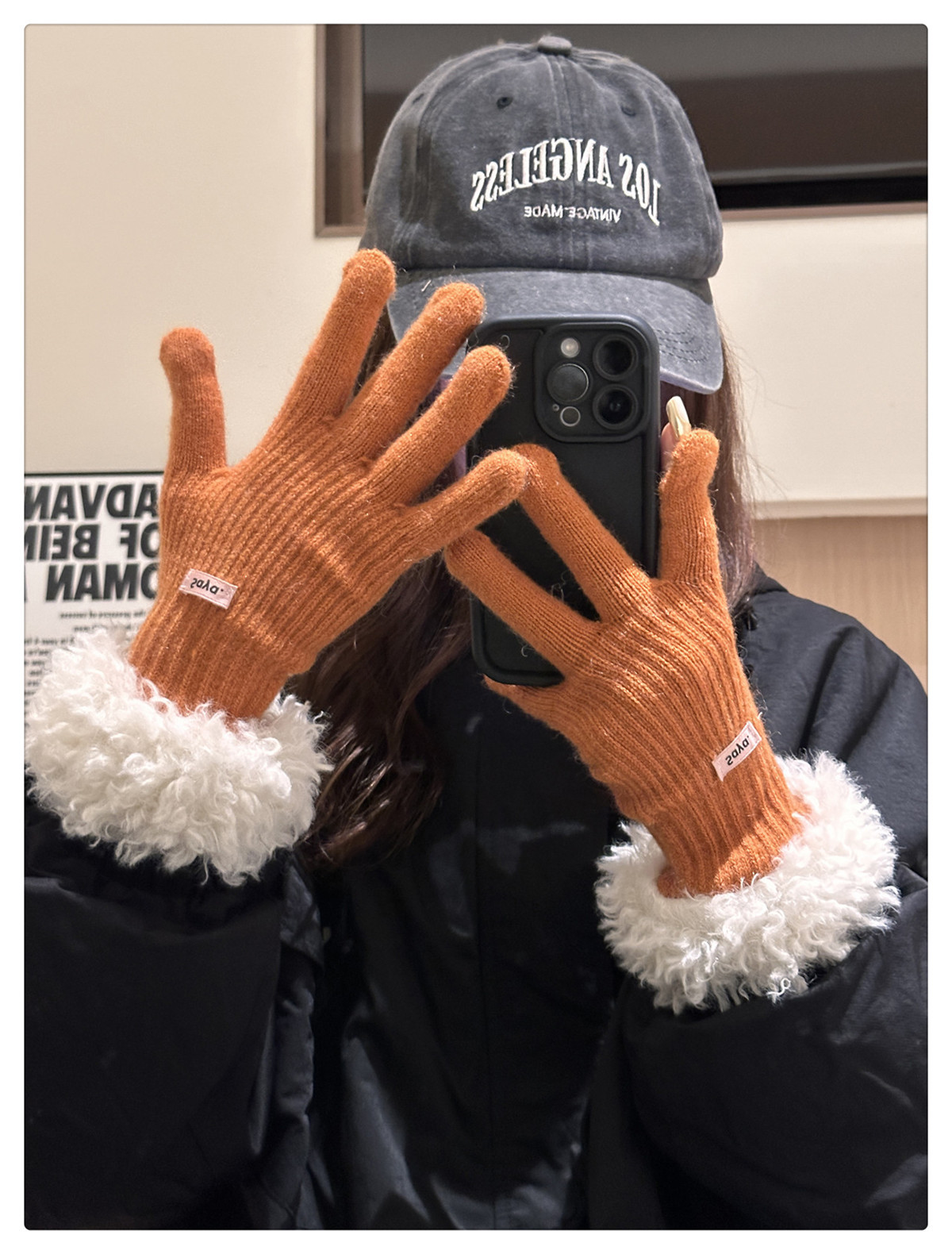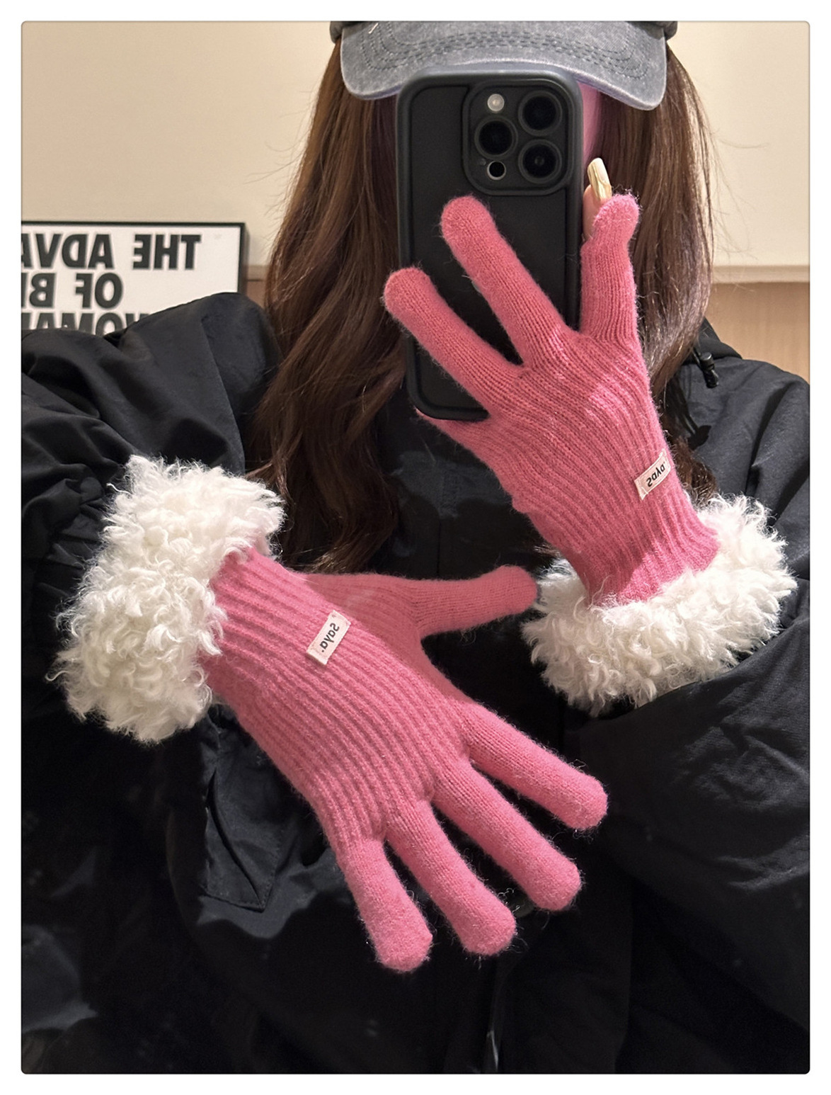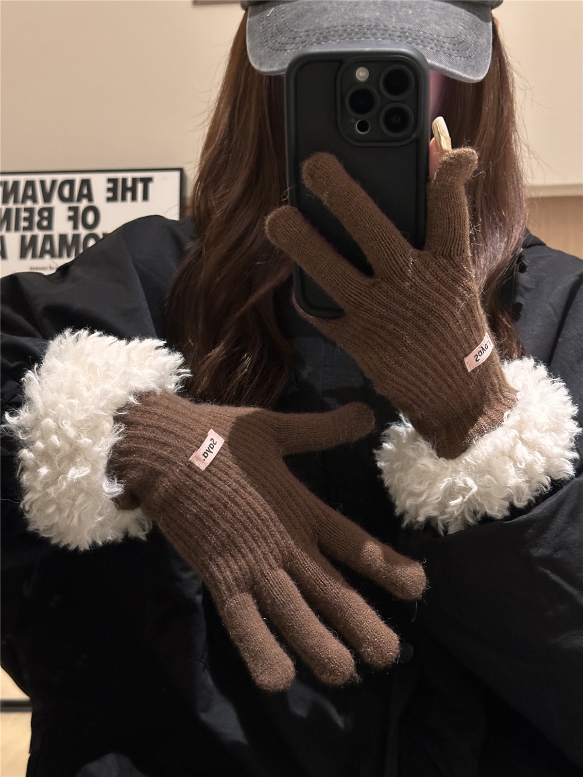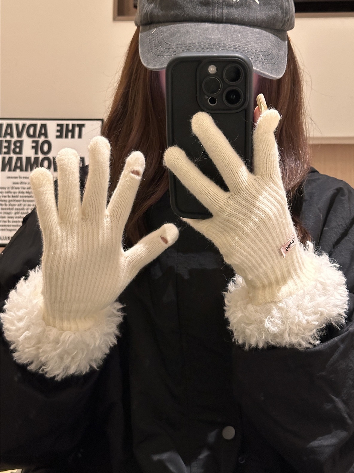 毛の縁の手袋の女性の冬の2023新型の韓国版は厚い保温の毛糸のメリヤスの指の手袋を厚くしてタッチパネルの潮に触れることができます。