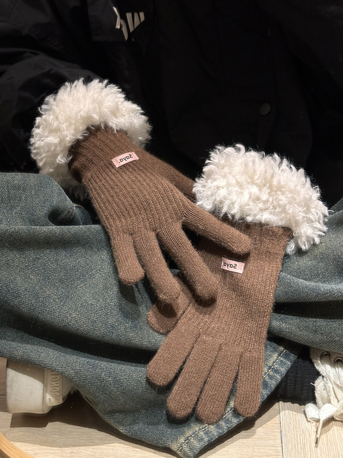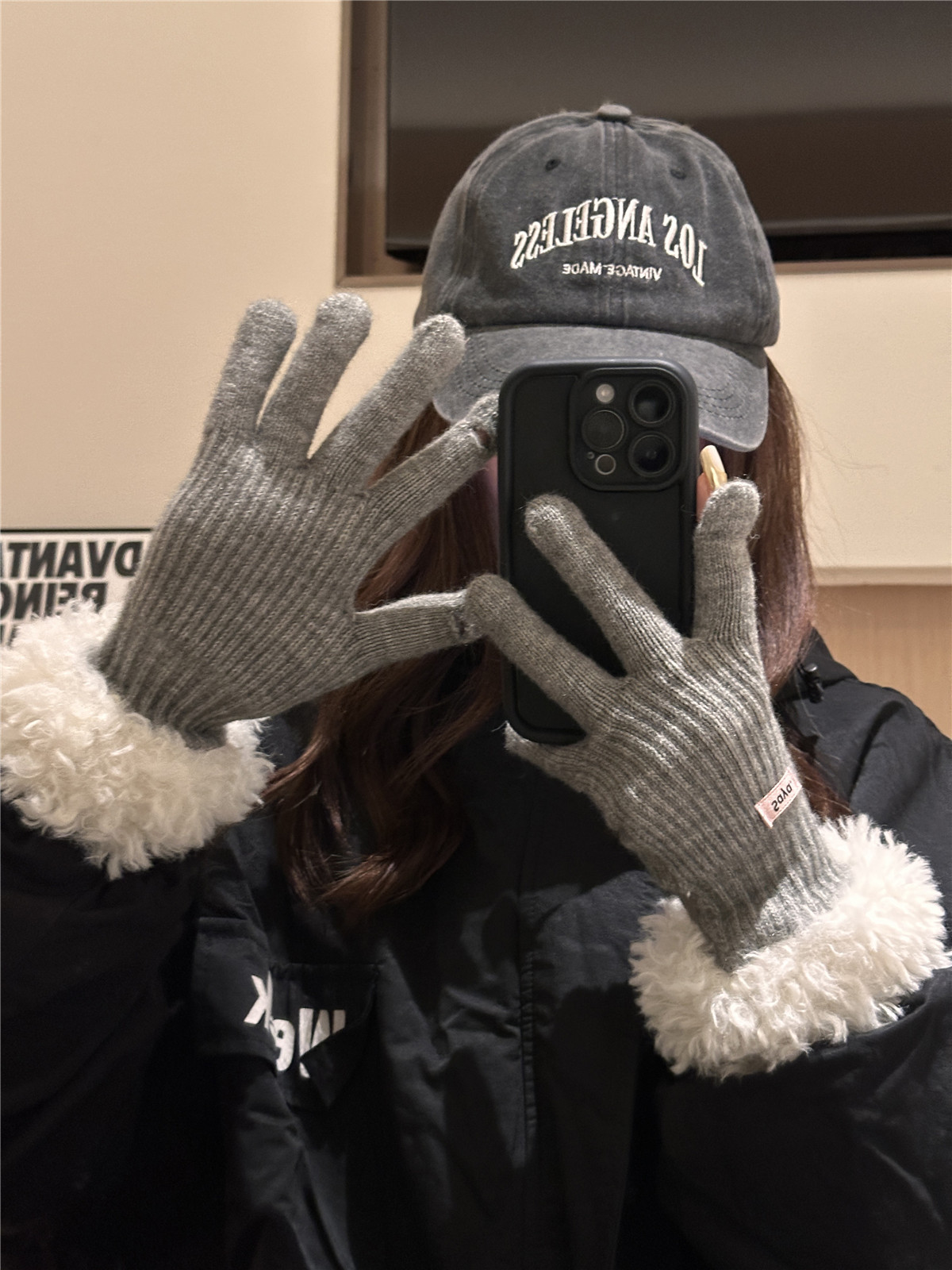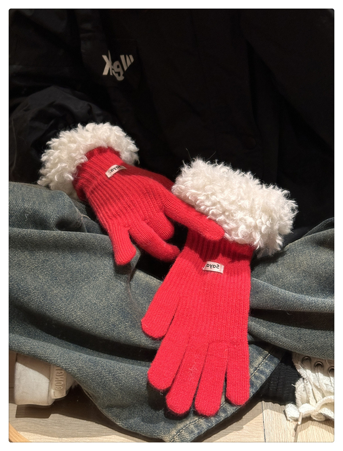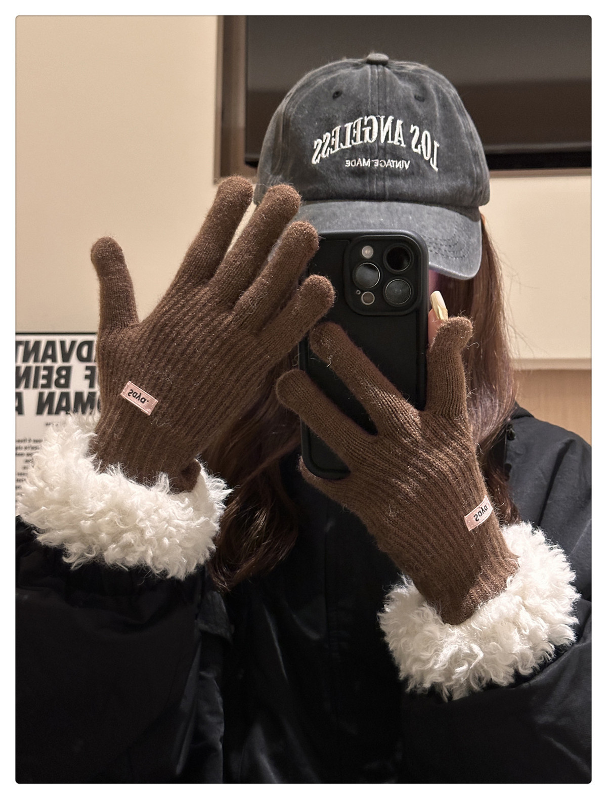 毛の縁の手袋の女性の冬の2023新型の韓国版は厚い保温の毛糸のメリヤスの指の手袋を厚くしてタッチパネルの潮に触れることができます。