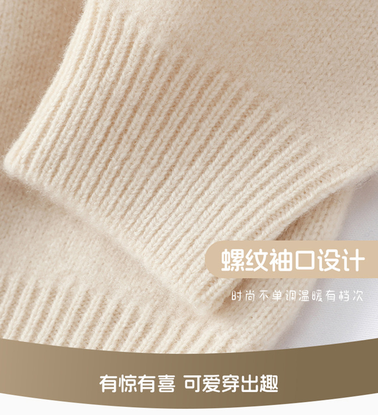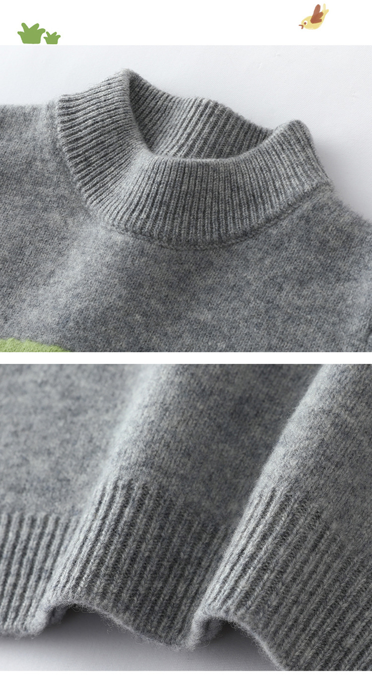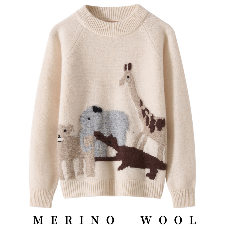 男女儿童同款羊毛衫纯羊毛内搭圆领套头毛衣秋冬新款卡通动物刺绣